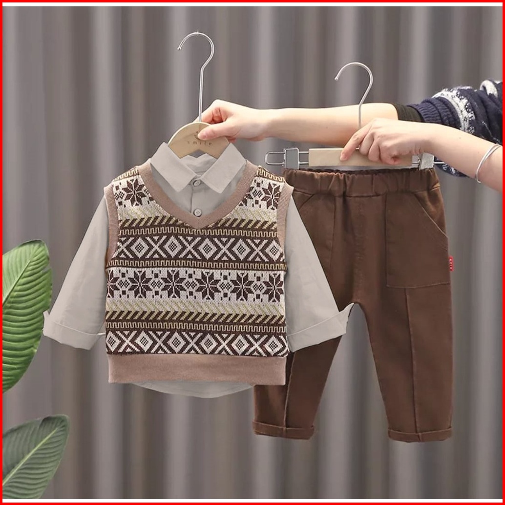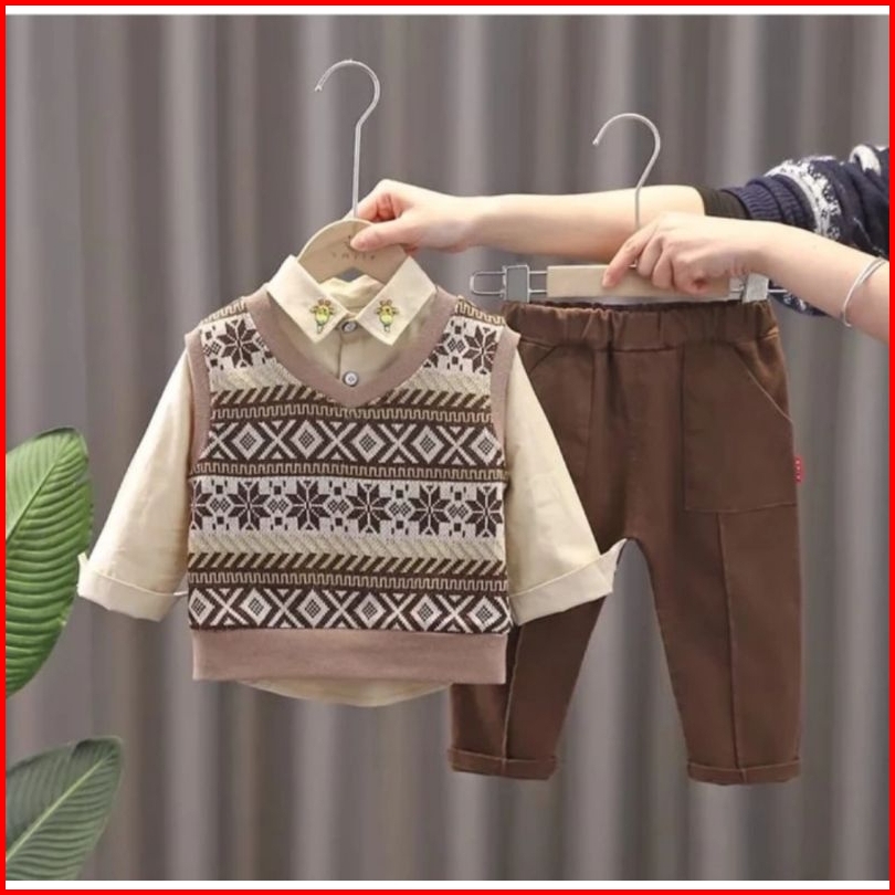 Setelan 3in1 Rajut Anak Laki Laki Dan Perempuan Kemeja Rayon 1-5 Tahun