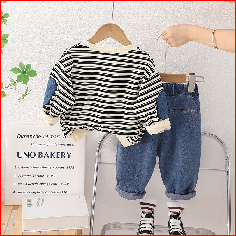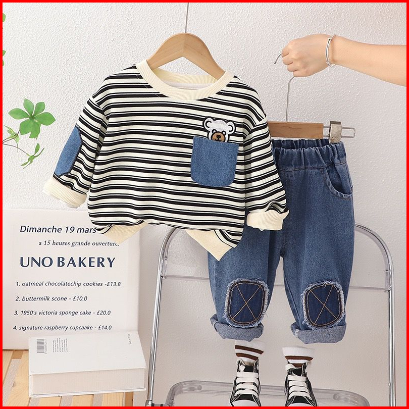 Brownieground Setelan Anak Laki Laki Usia 6 Bulan - 5 Tahun Premium Motif Garis Pocket