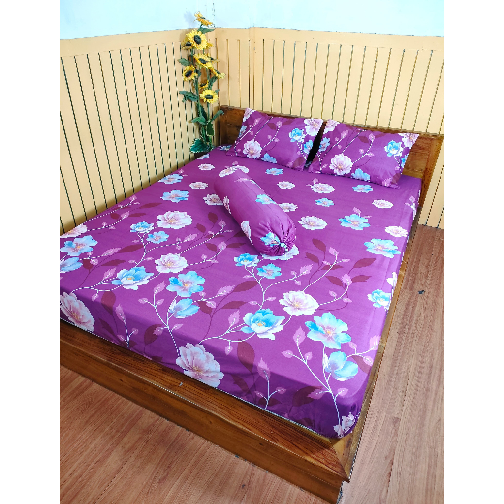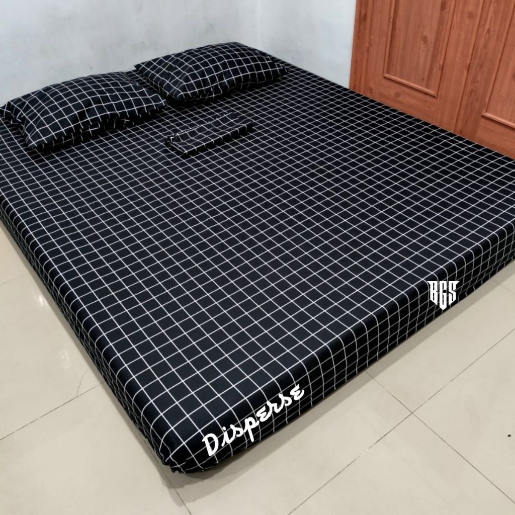 SPREI MOTIF KOTAK HITAM LABUBU COKLAT DAN BUNGA UNGU 120 160 180 200