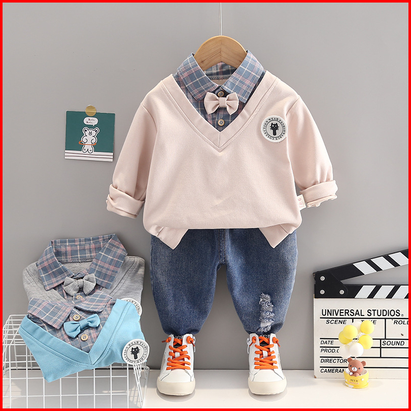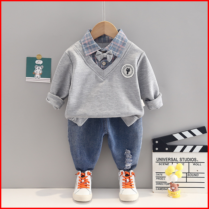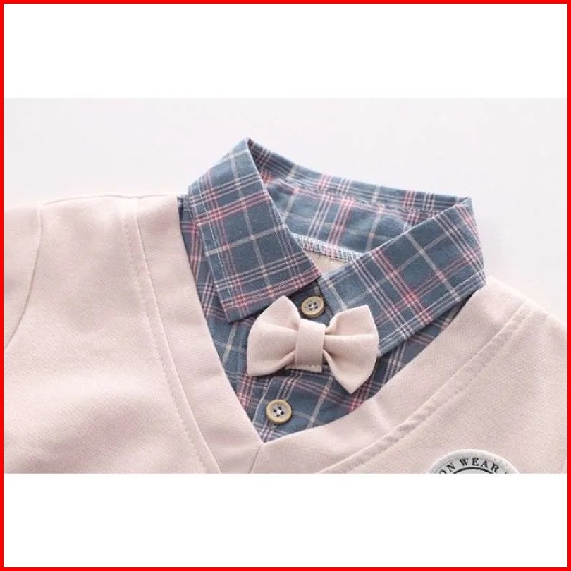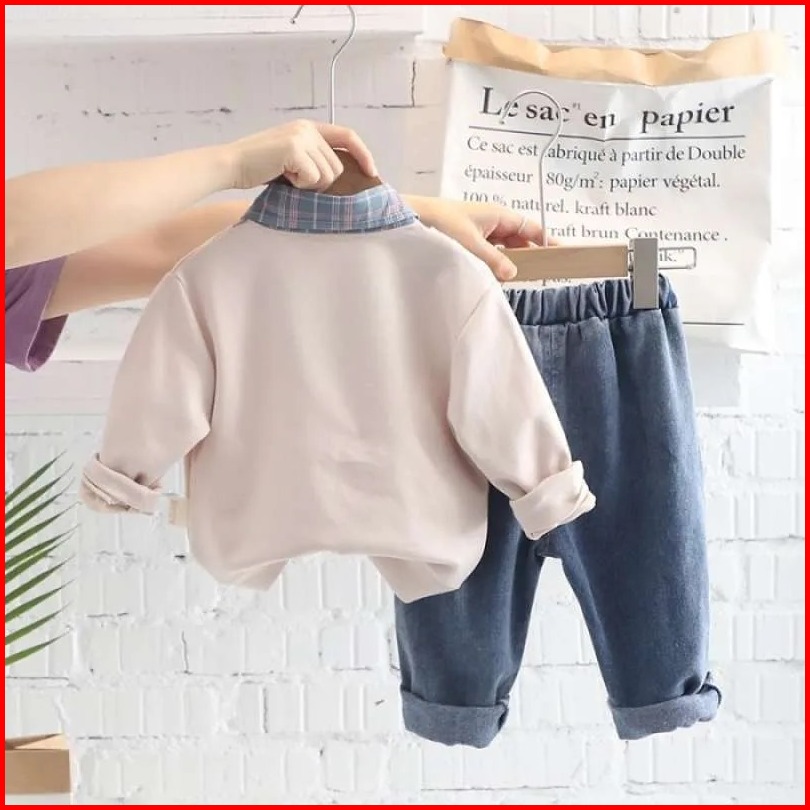 Mazakids Setelan Anak Laki Laki Keren Motif Cat Anak Anak Grey Cream Ala Korea 6 Bulan - 5 Tahun