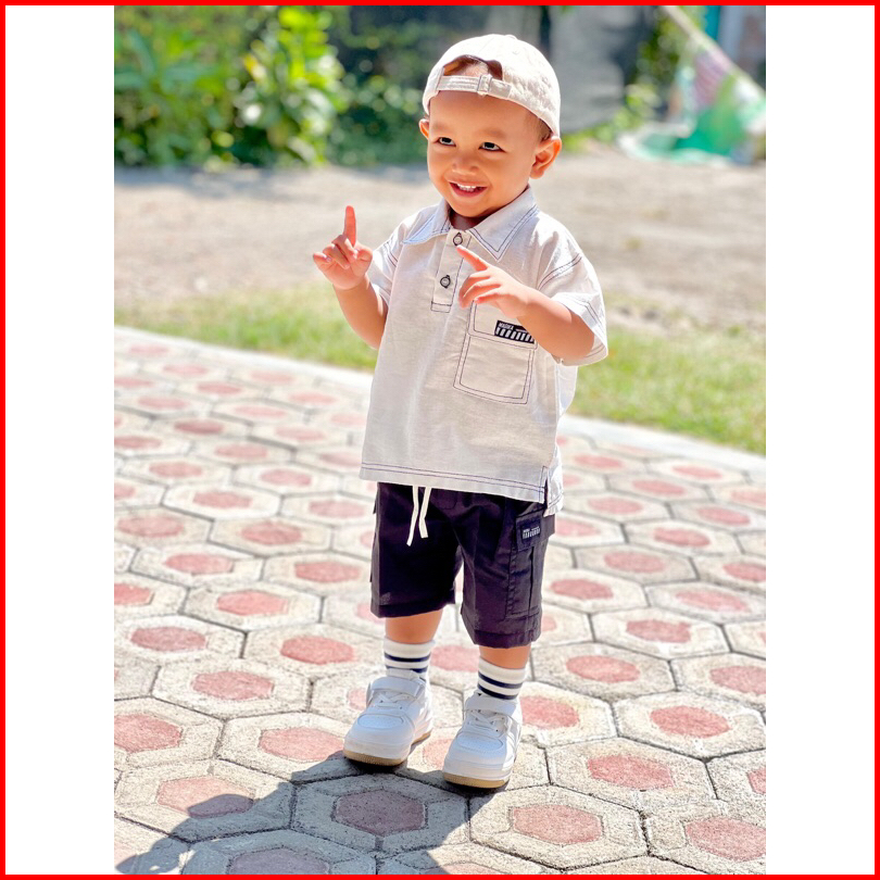 Setelan Kemeja Anak Laki Laki Over Size Celana Cargo Drill Warna Hitam Dan Putih Ukuran 6bulan - 1-6tahun Trend Masa Kin