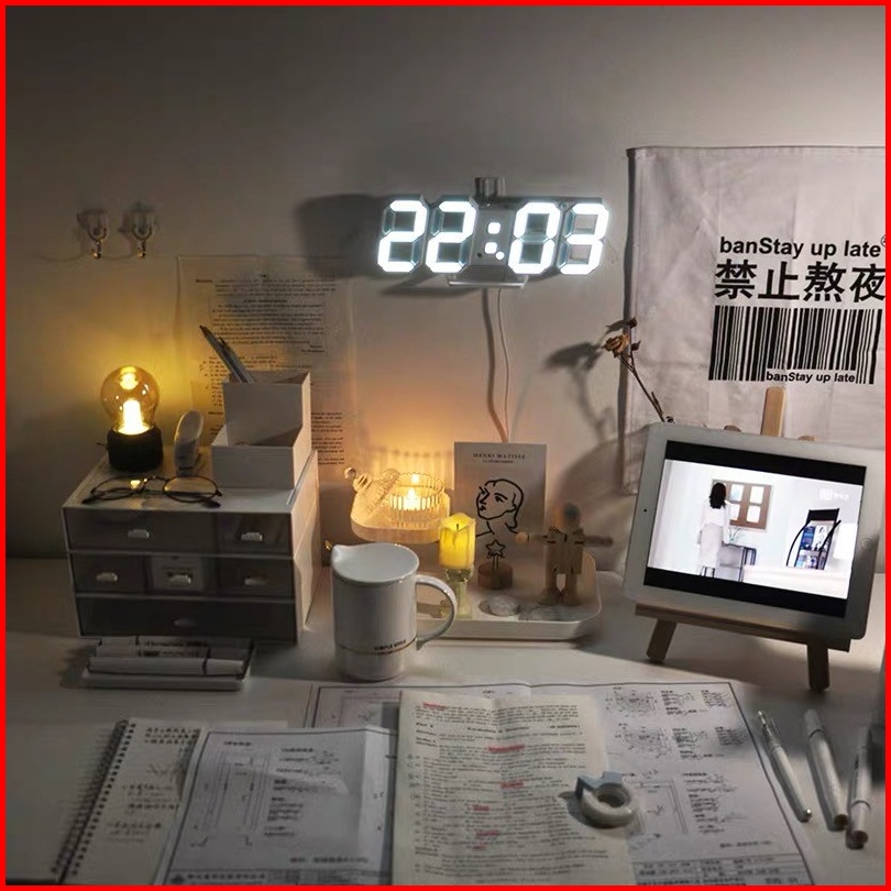 R3ws Jam Meja Digital Modern Style Jam 3d Digital Clock Led Jam Digital Dinding Dekorasi Rumah Jam Tidur Malam - Usb Pow