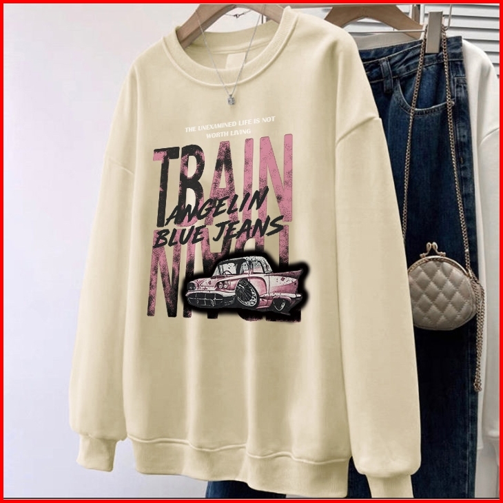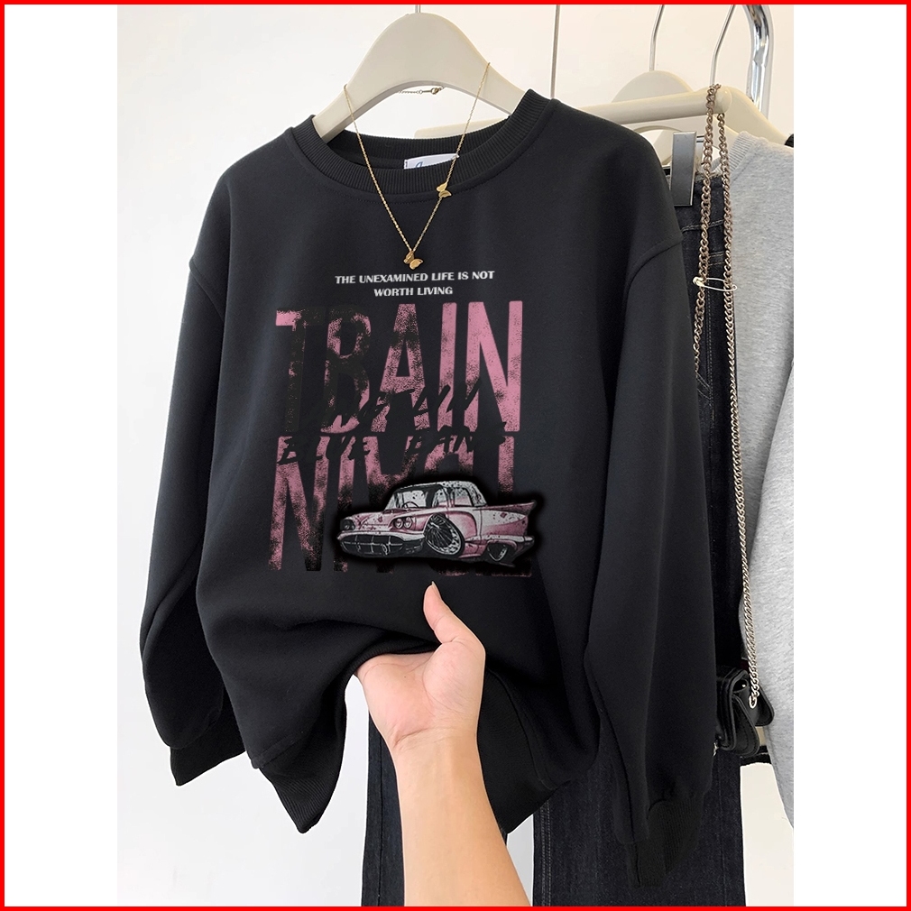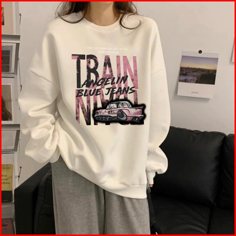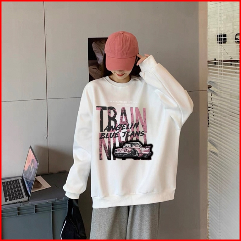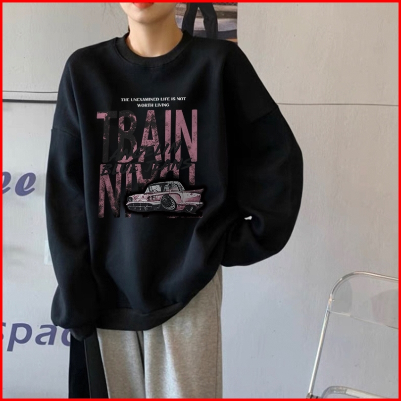 Forteid Sweater Lengan Panjang Oversized Street Style Korean Style Switer Wanita Oversize Kaos Pola Mobil Retro Korean S