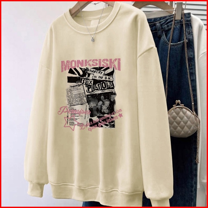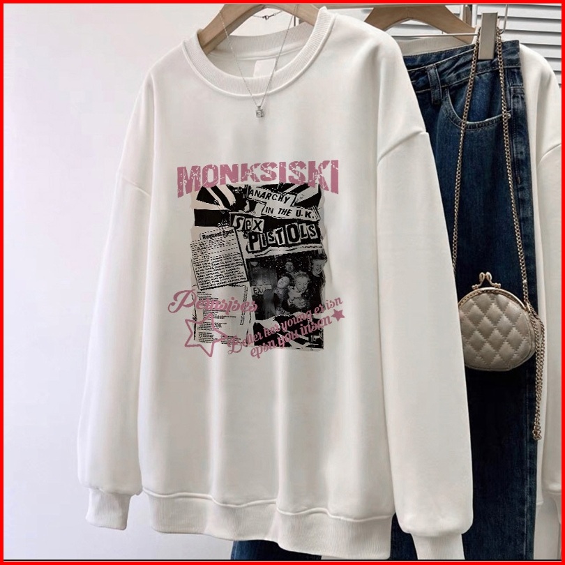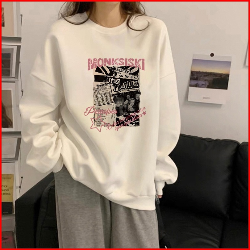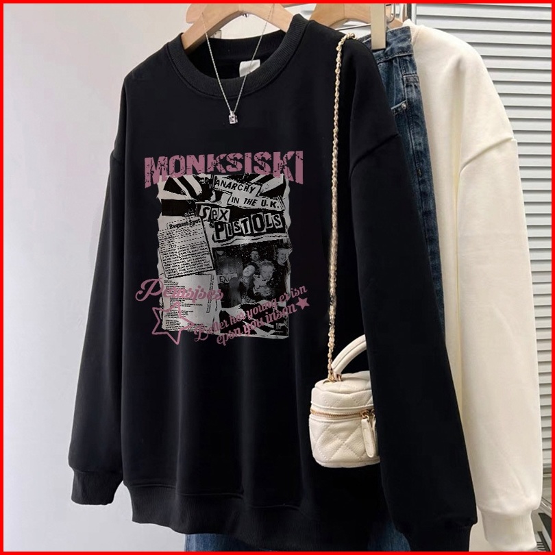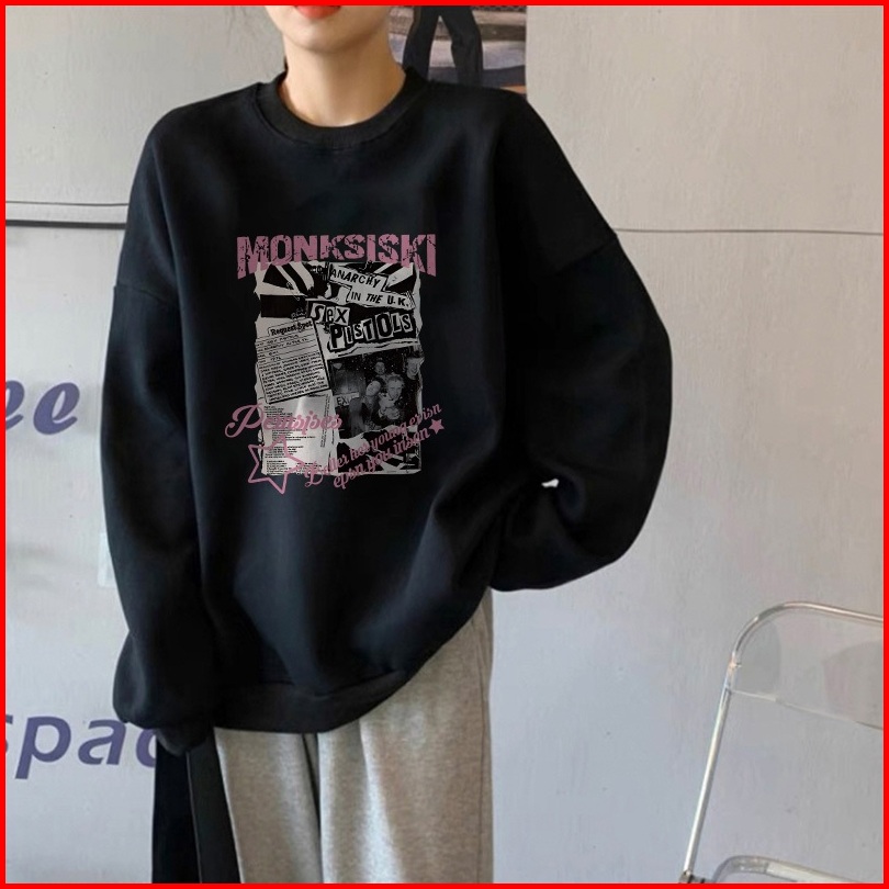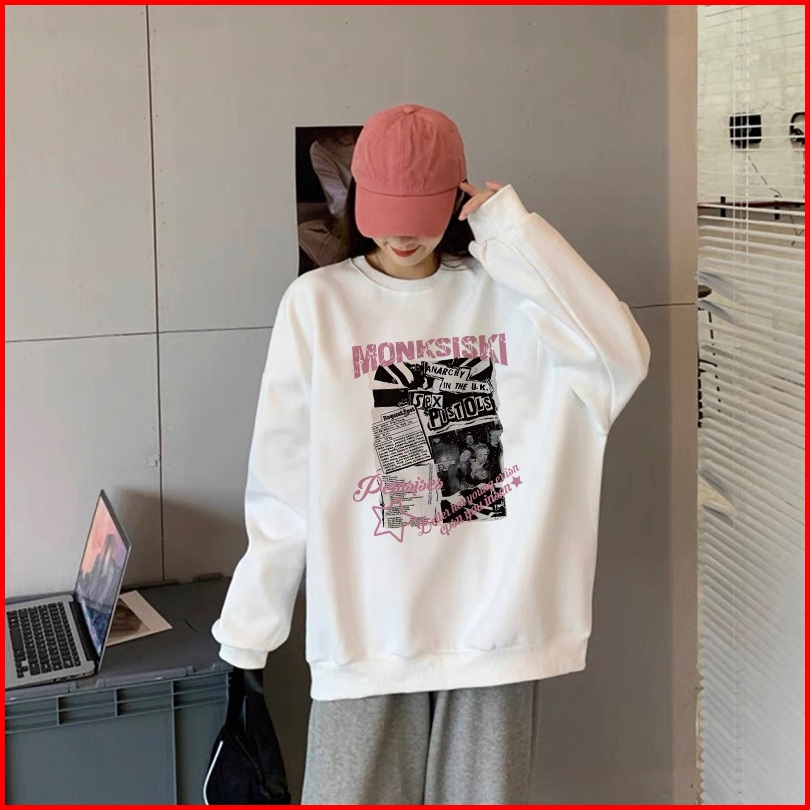 Forteid Sweater Lengan Panjang Oversize Street Style Korean Style Switer Wanita Oversize Pola Monksiski Korean Style Swe