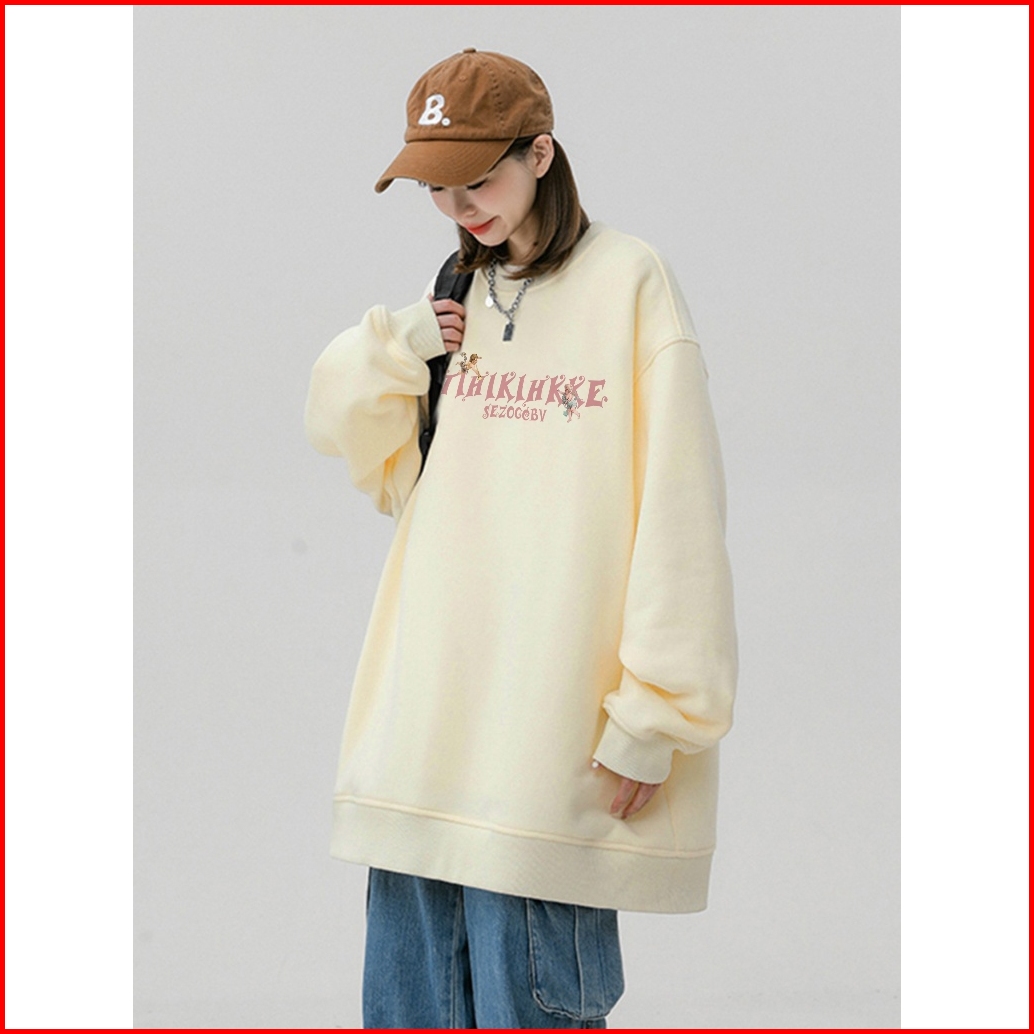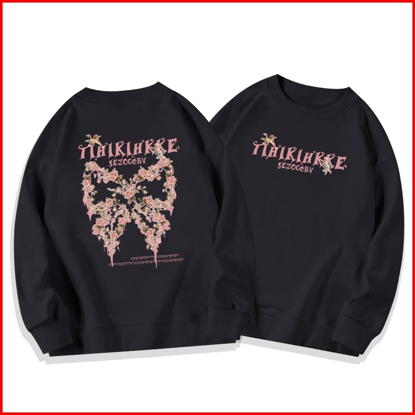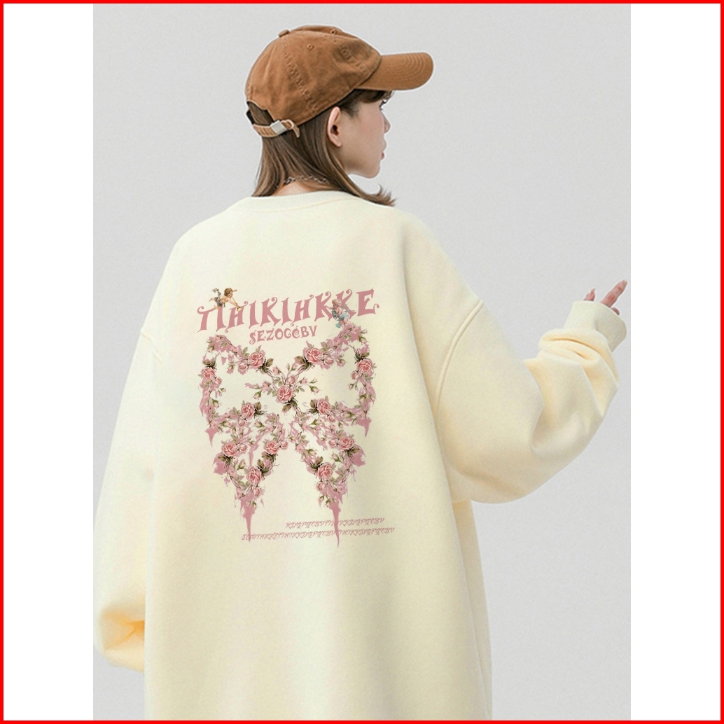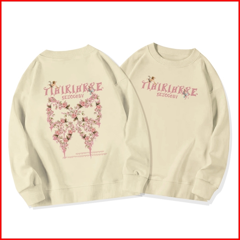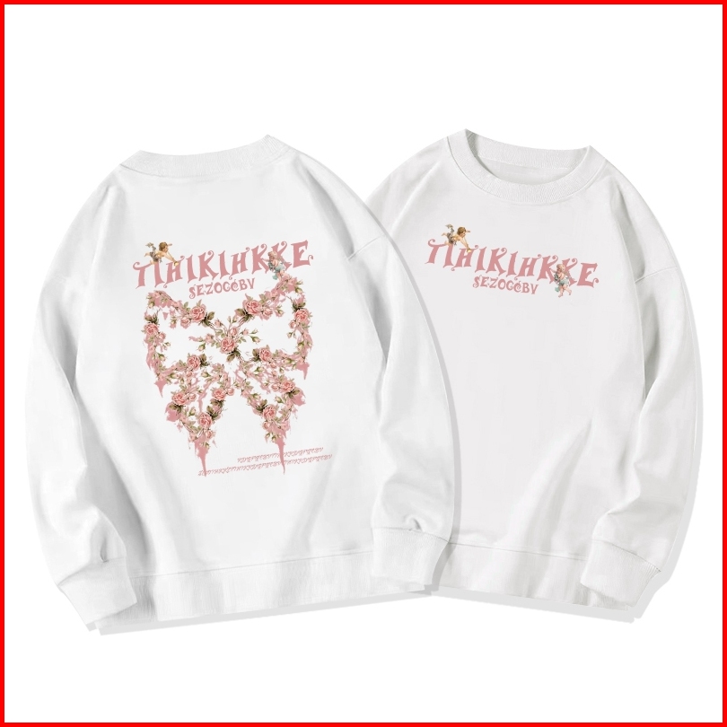 Forteid Cetakan Busur Bunga Elf Switer Wanita Oversize Kaos Pola Merek Trendi Korean Style Sweater Oversize Crewneck Wan