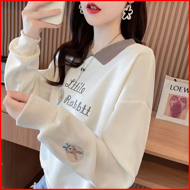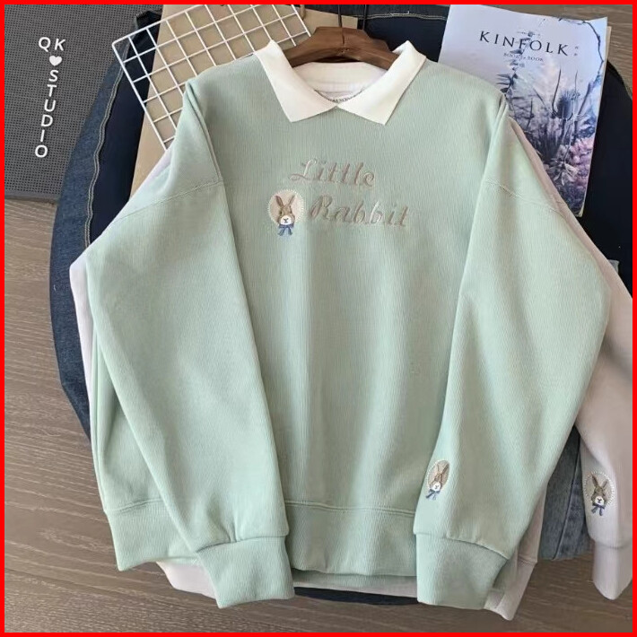Miki - Little Rabbit Sweatshirt Korean Loose Sweater Cute Girls Cartoon Polo Sweater Import