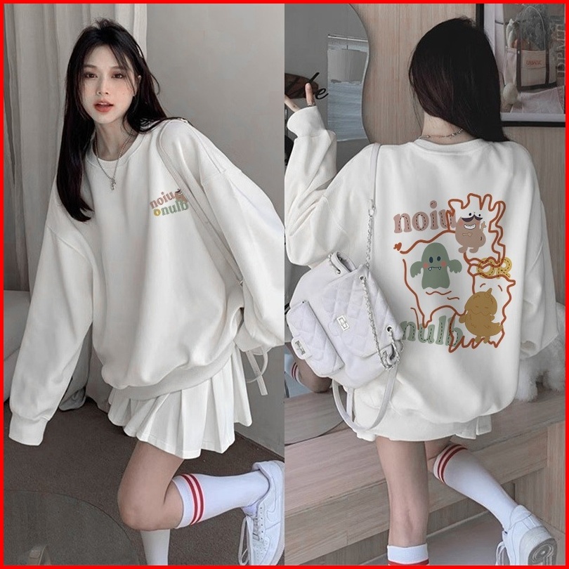 Qlioo Korean Sweatshirts Cute Little Monster Loose Lengan Panjang Sweatshirt Wanita Sweater Wanita