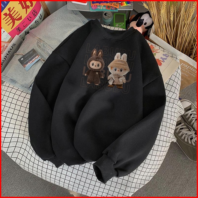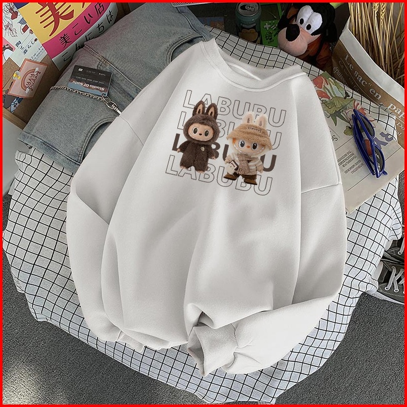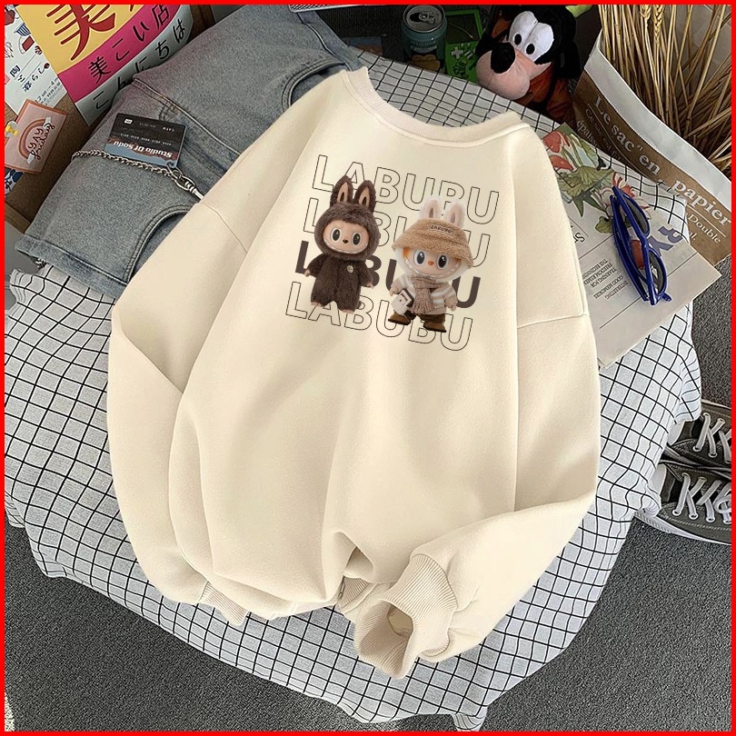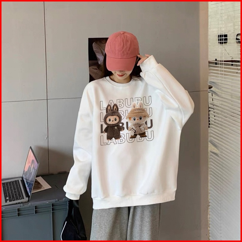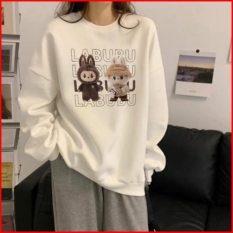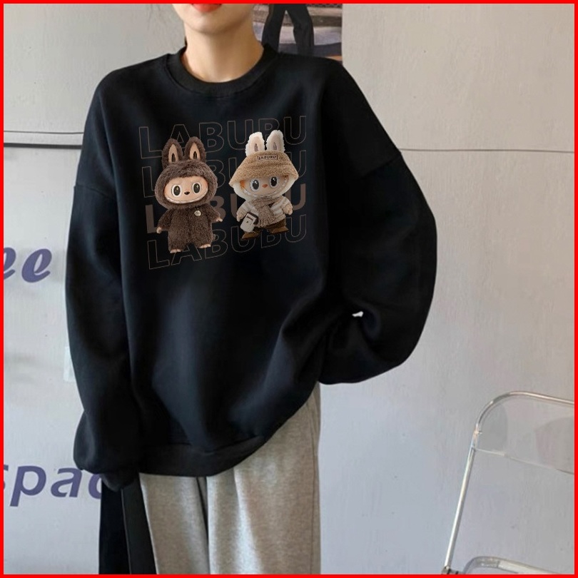 Forteid Sweater Lengan Panjang Oversized Street Style Korean Style Switer Wanita Oversize Kaos Cetakan Cetakan Labubu Ko
