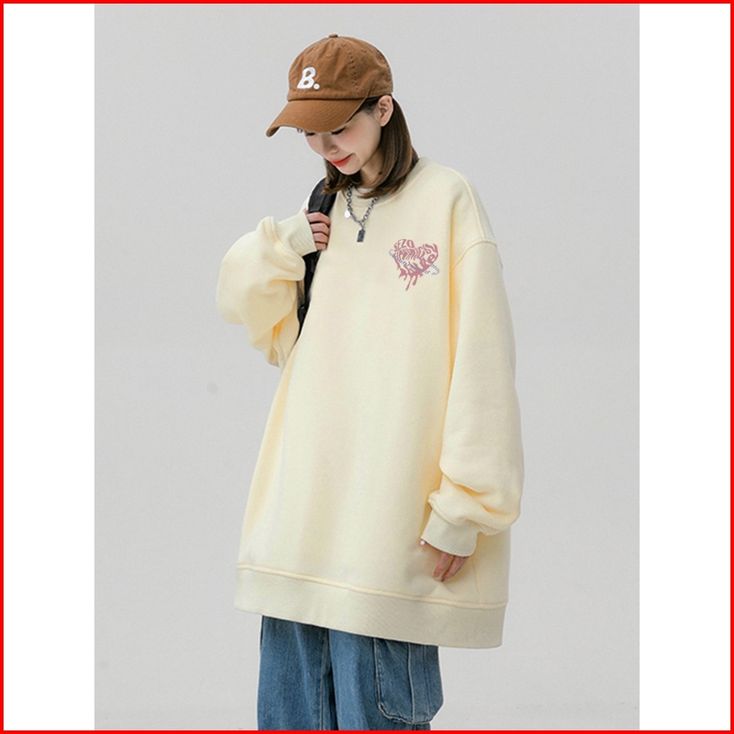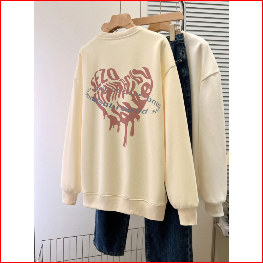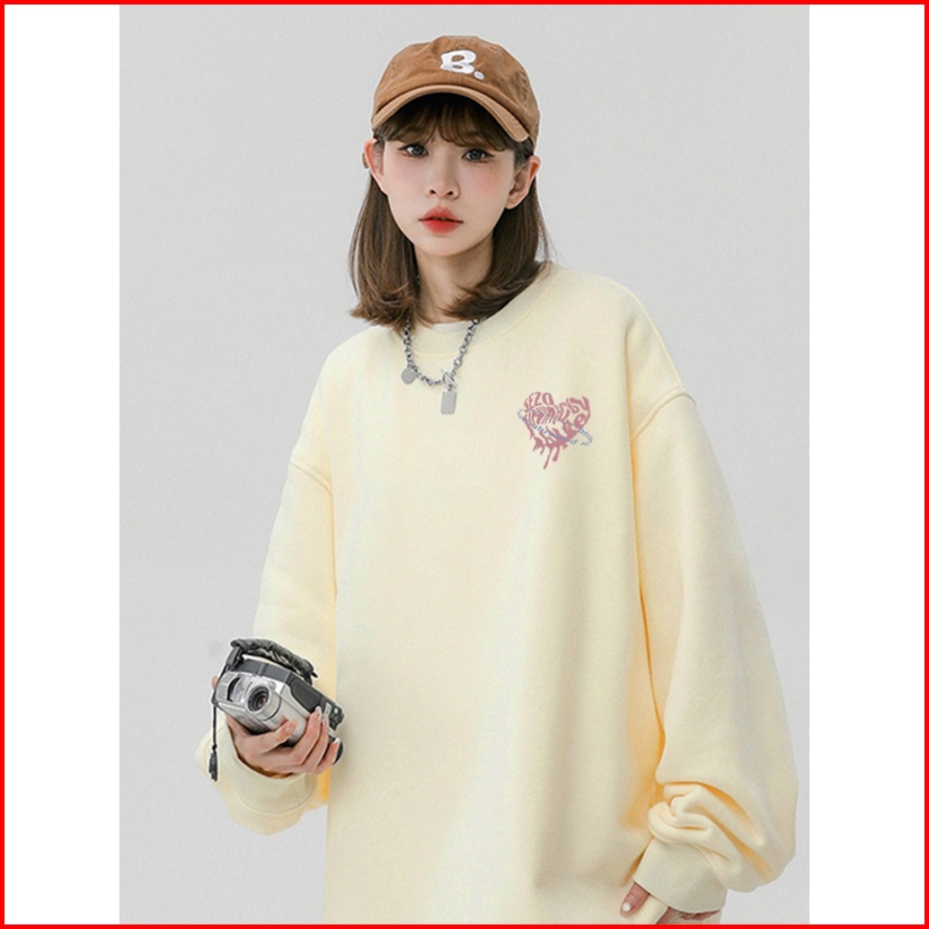 Fastfash Crewneck Sweater Cetakan Surat Artistik Berbentuk Hati Lengan Panjang Oversize Switer Korea Style Unisex