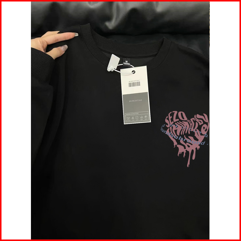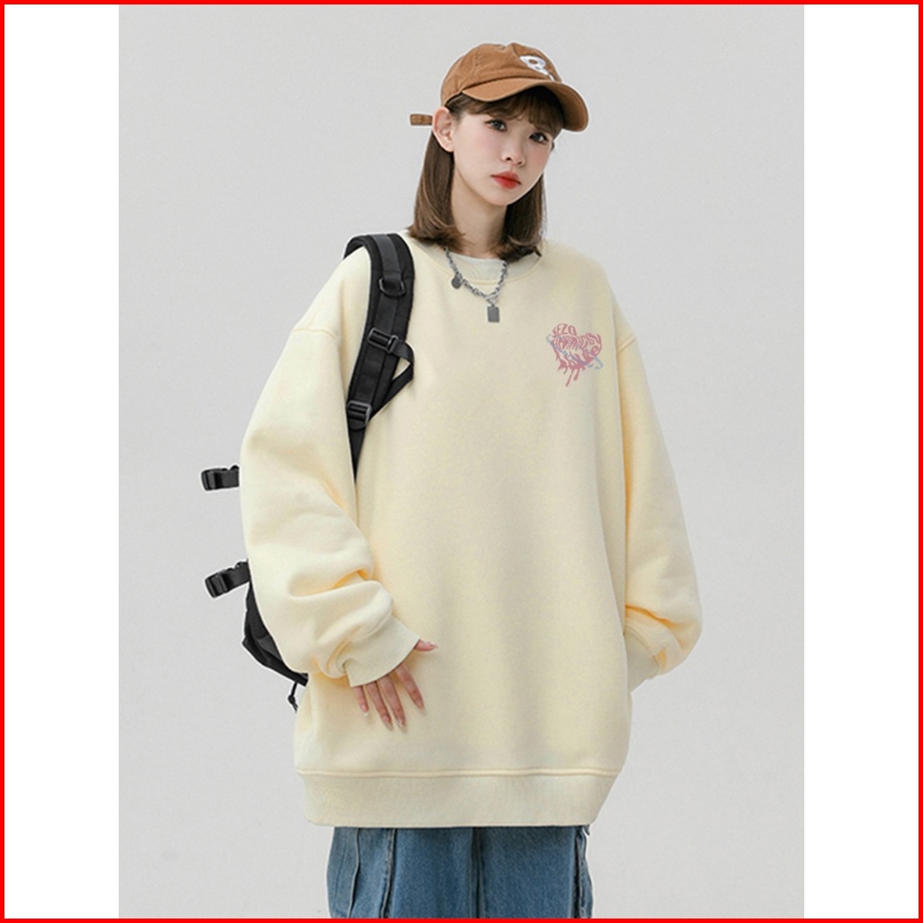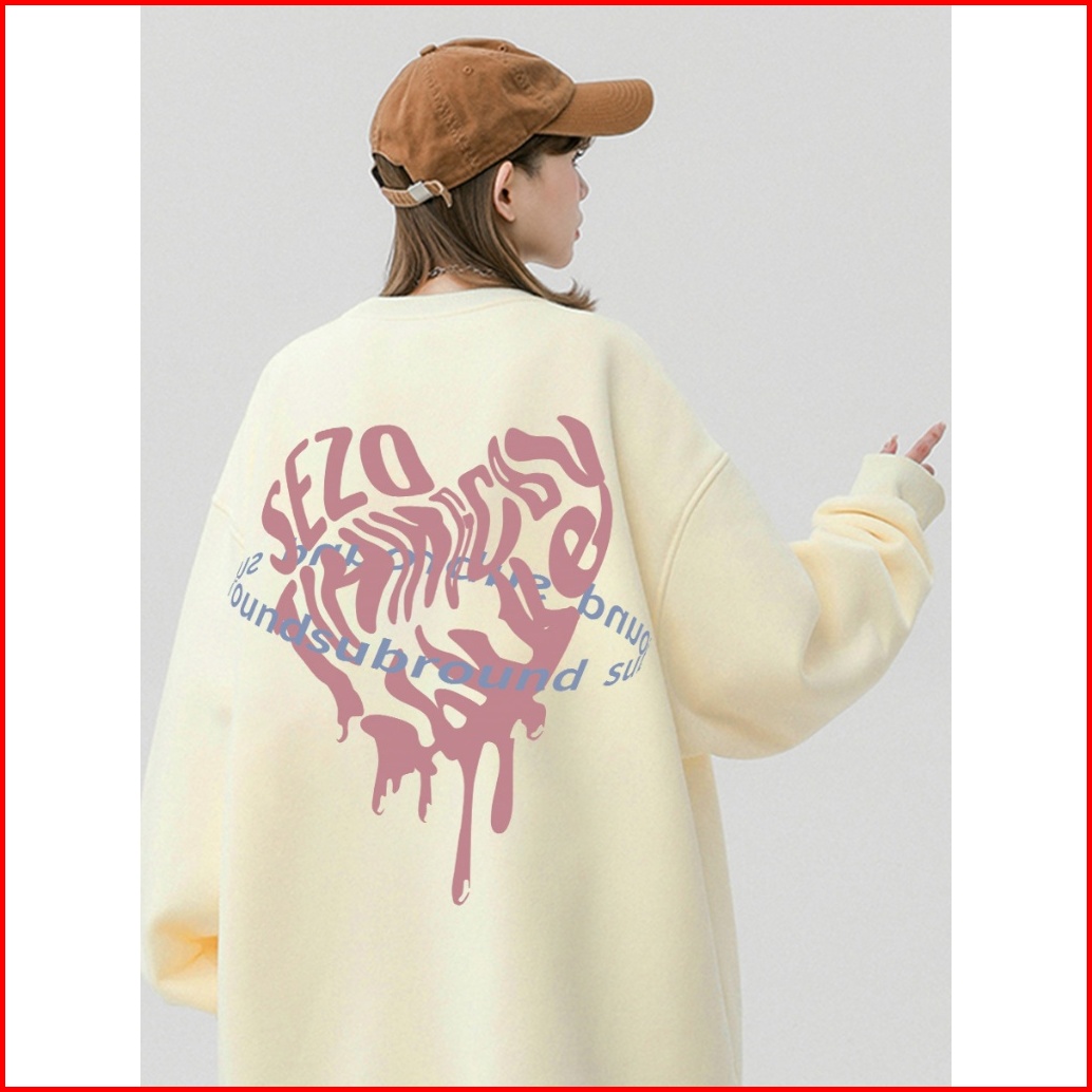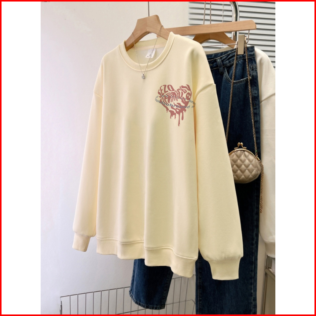 Fastfash Crewneck Sweater Cetakan Surat Artistik Berbentuk Hati Lengan Panjang Oversize Switer Korea Style Unisex