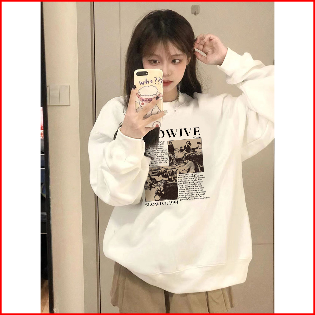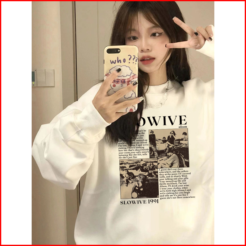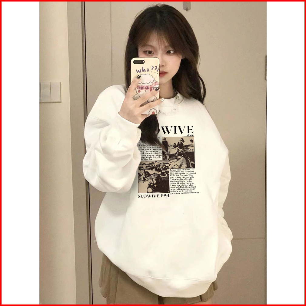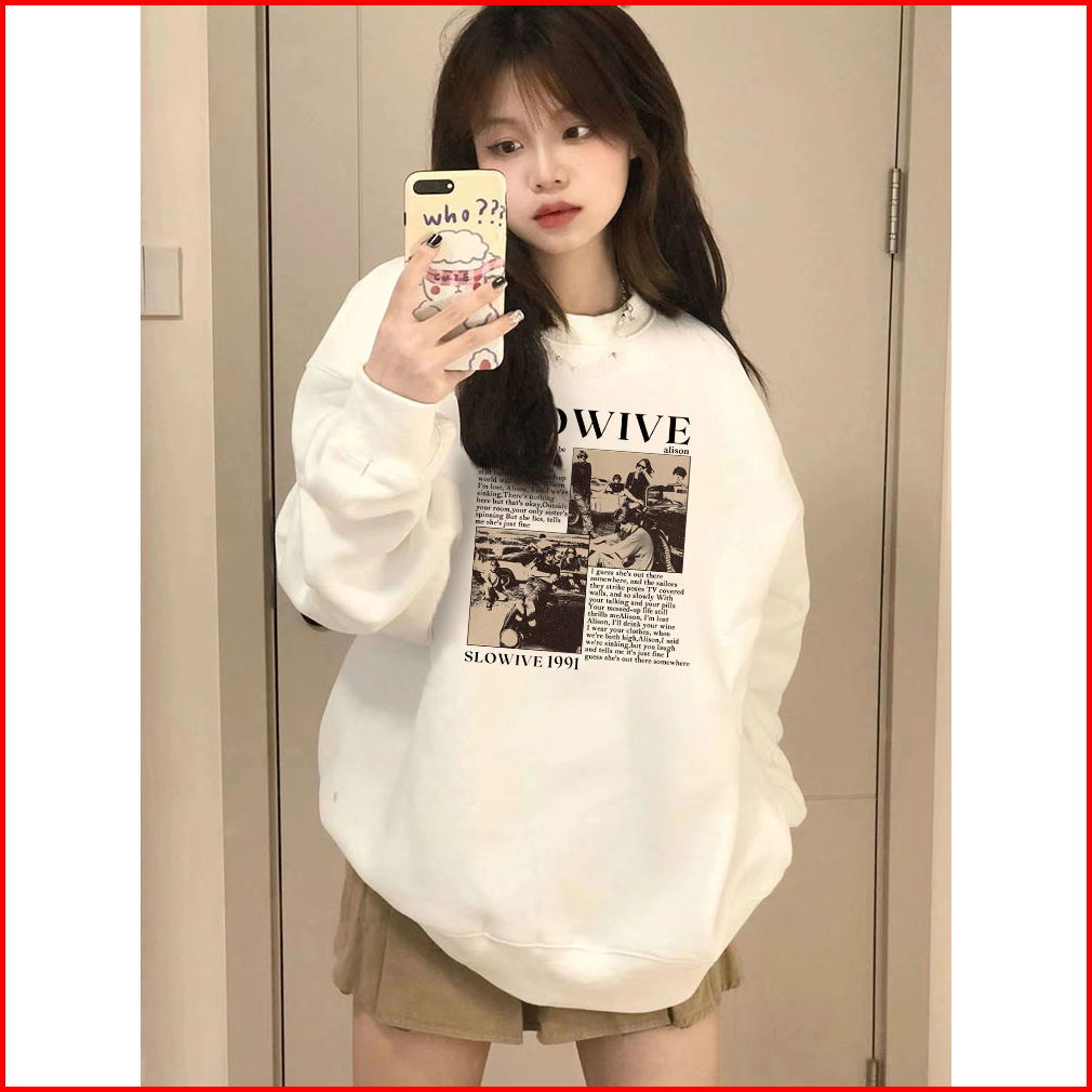 Sweater Oversize Korea Lengan Panjang British Band Letter Motif Graffiti Printed Switer Putih Import Sweater Kekinian