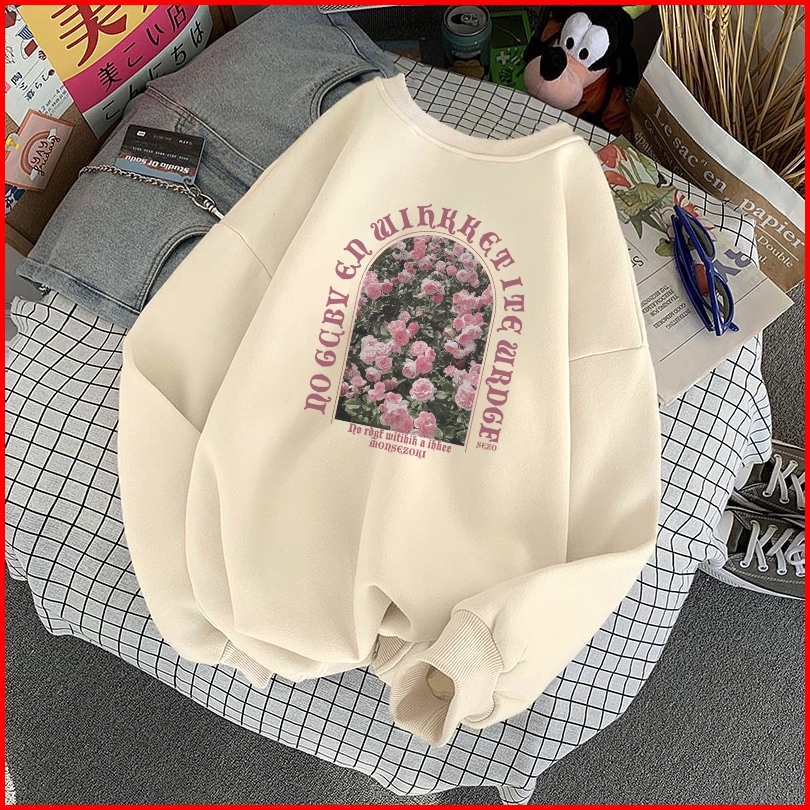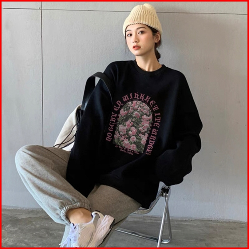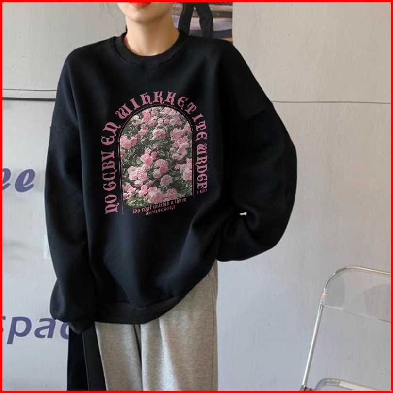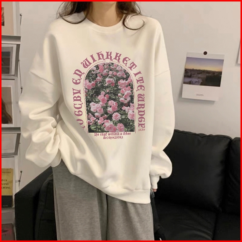 Forteid Trendi Yang Lucu Lengan Panjang Oversized Street Style Korean Style Switer Wanita Oversize Cetakan Cetakan Bunga