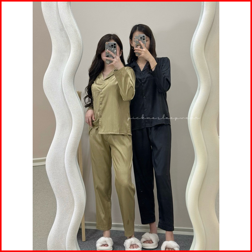 Pickme A10 Baju Tidur Lengan Panjang Stelan Oneset Wanita Baju Tidur Satin Lengan Panjang