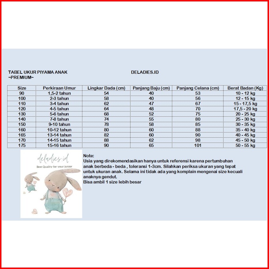 Piyama Anak Premium 3-13 Tahun