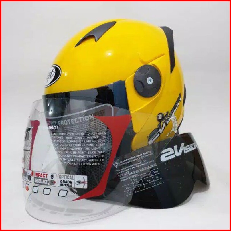 Helm Kyt 2 Vision Yello Kuning Golkar Fullset Kaca Dengan Spoiler
