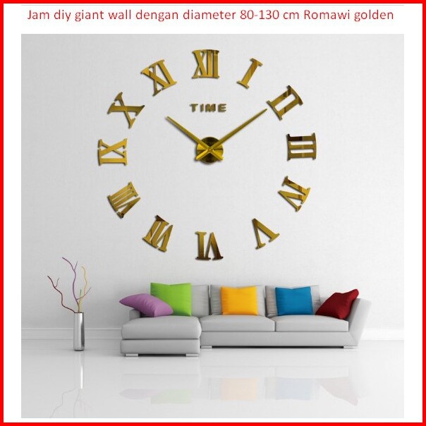 Jam Diy Giant Wall Dengan Diameter 80-130 Cm Romawi Golden