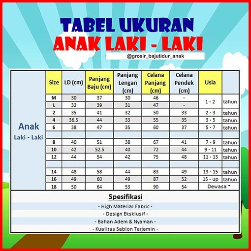 Baju Tidur Anak Laki Setelan Panjang Panjang L- By- Ptp Mix Size 14-16-18