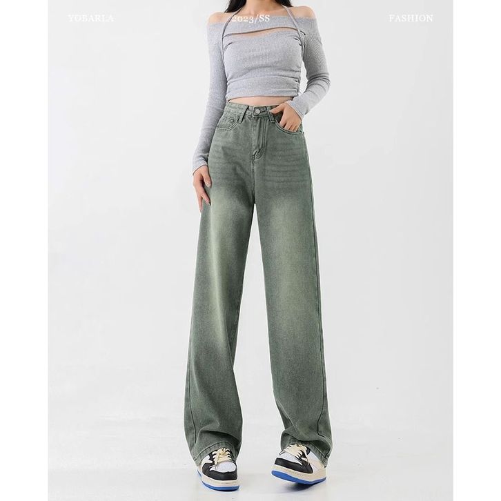 ANNE JEANS - Hijau retro Kulot Jeans Wanita Highwaist Loose Jeans