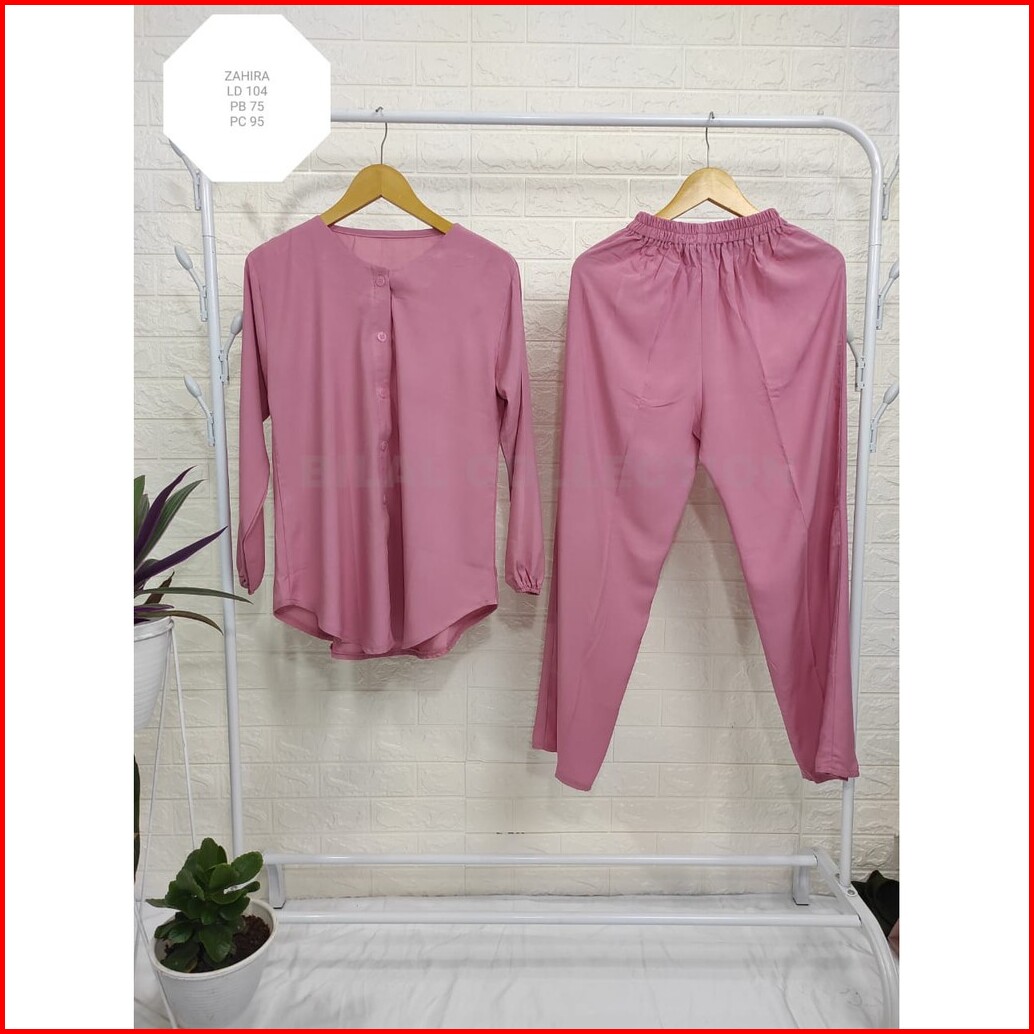 Pajamas Zahira Pajamas Polos Rayon Tangan Panjang Kancing Depan Piyama Polos Rayon Baju Tidur Wanita Baju Tidur Terbaru