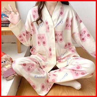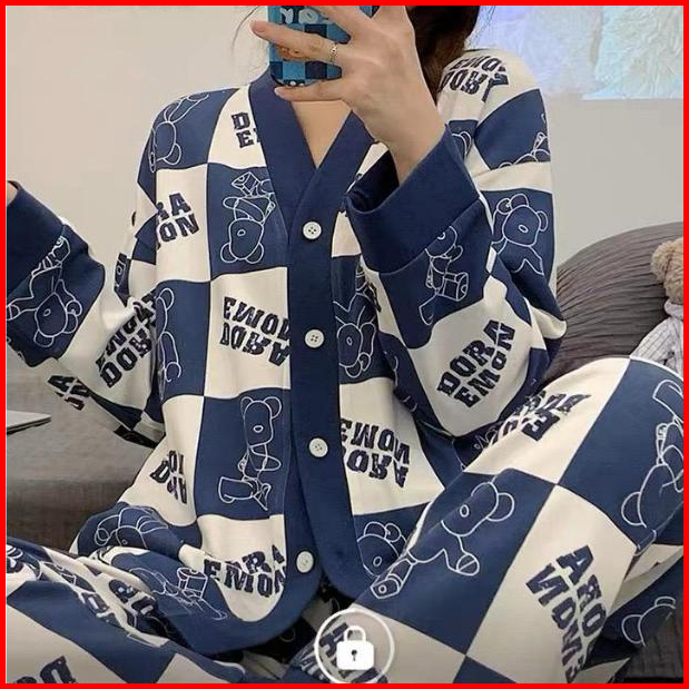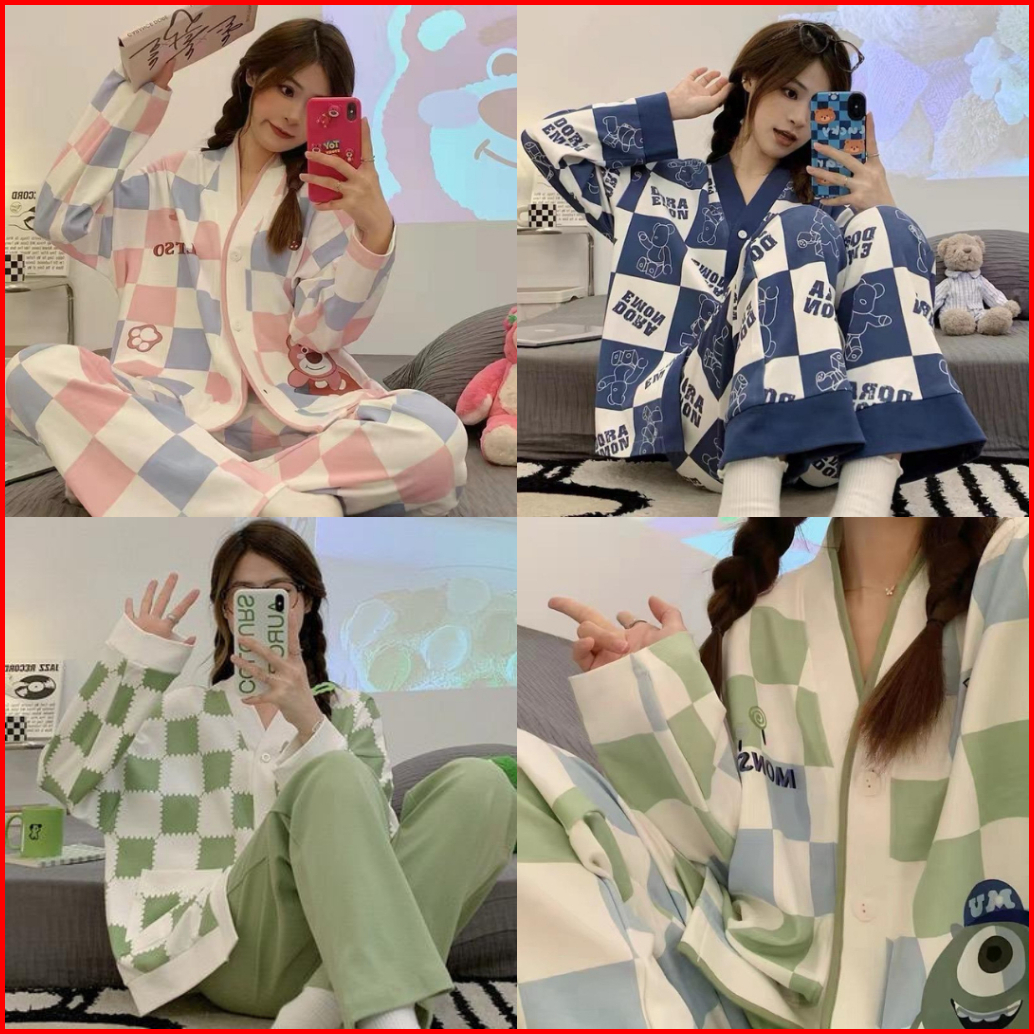 Littlecrab Baju Tidur Set Kancing Lengan Panjang Celana Panjang Piyama Full Pattern Setelan Lotso Monster Sleep Wear Aes