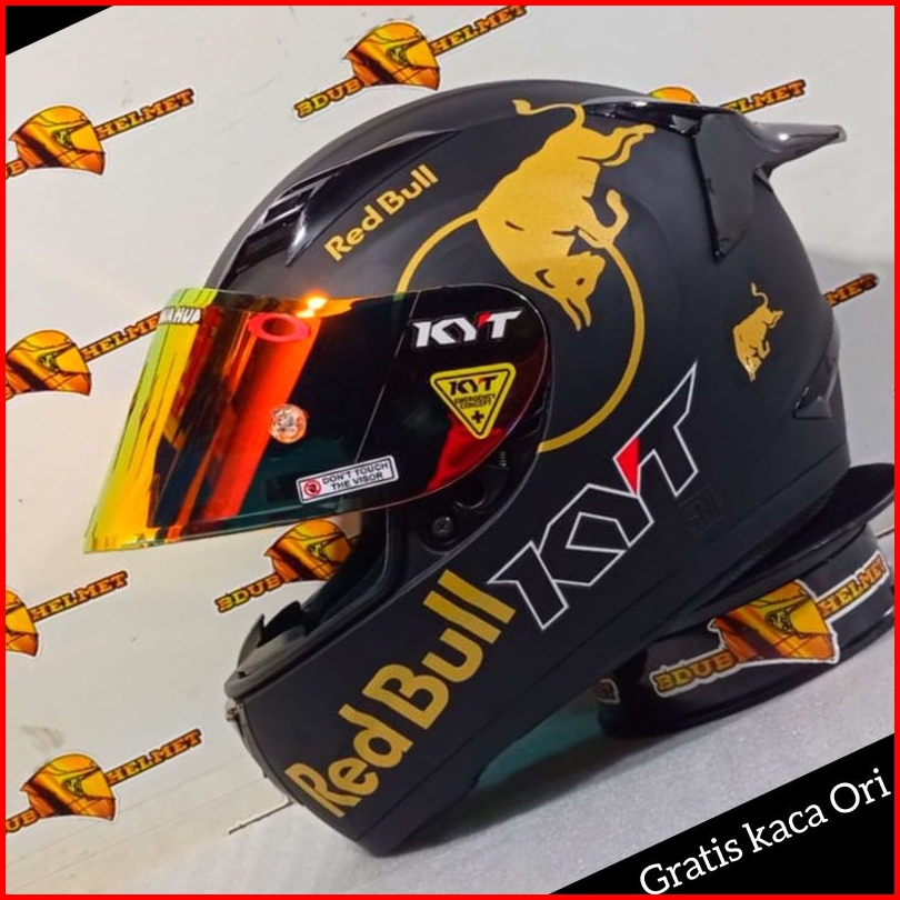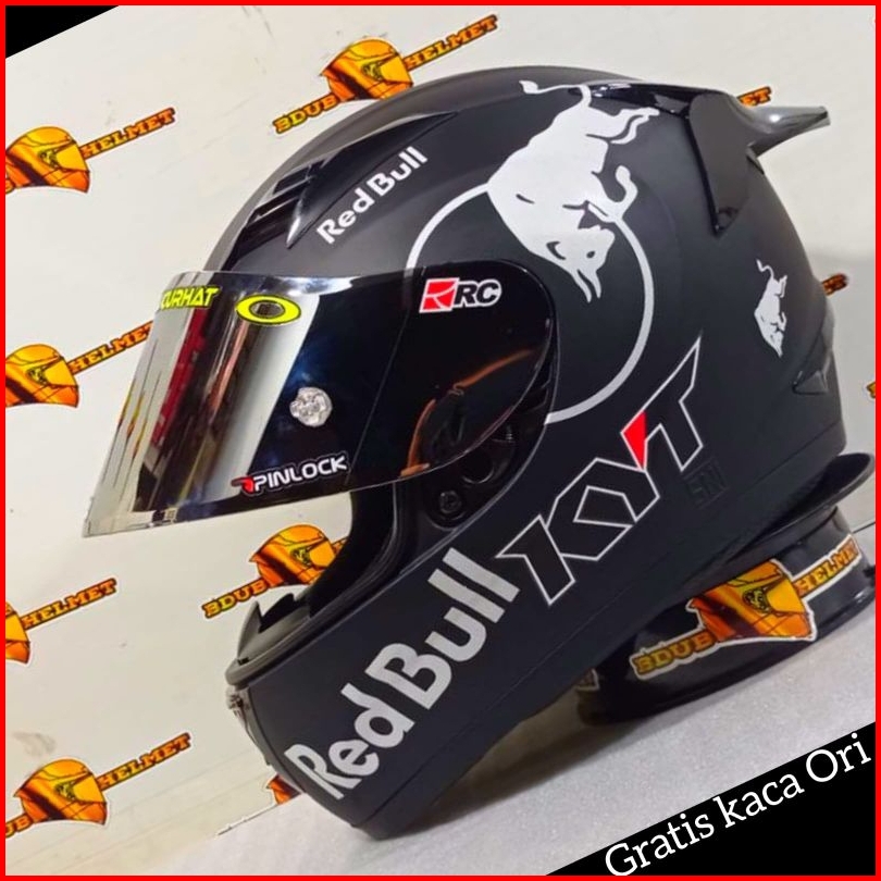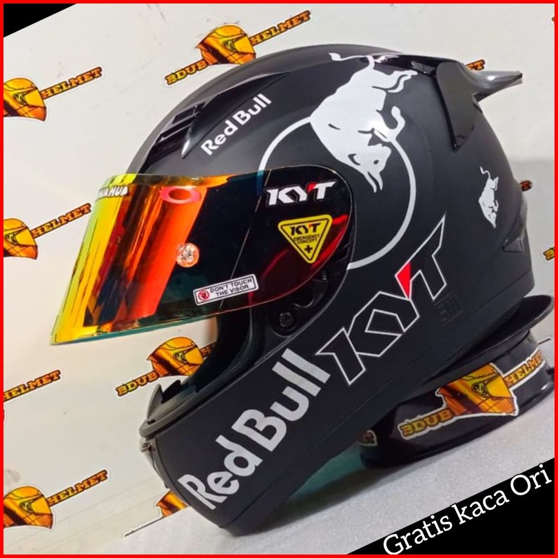 Helm Full Face Kyt R10 Black Doff Red- Paket Ganteng Gratis Kaca Ori