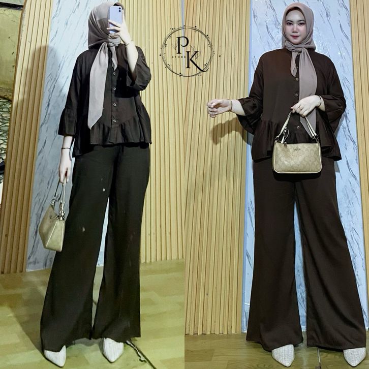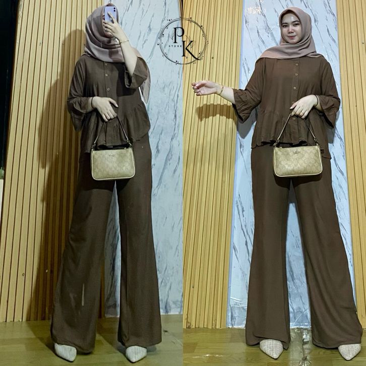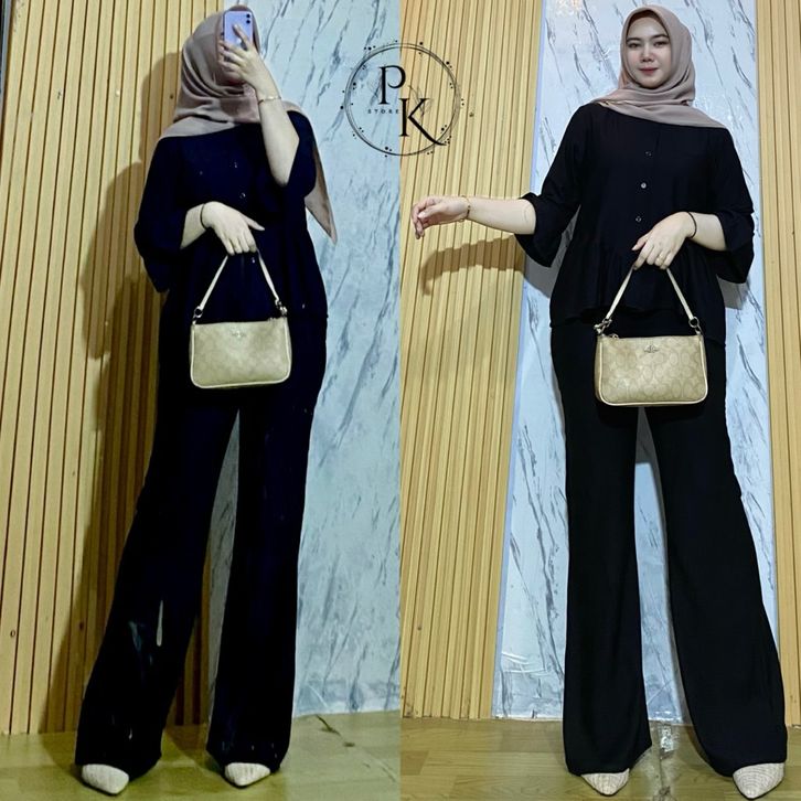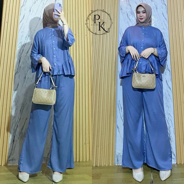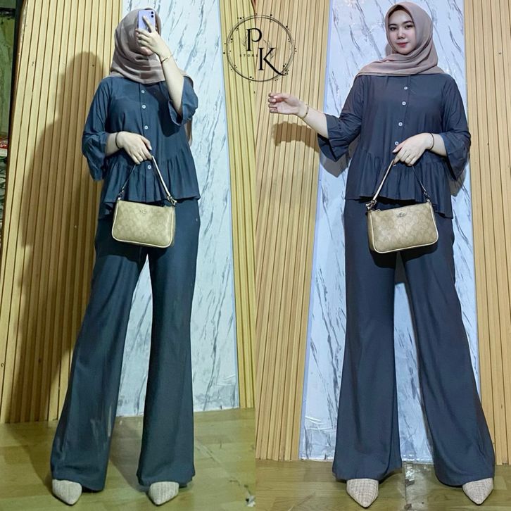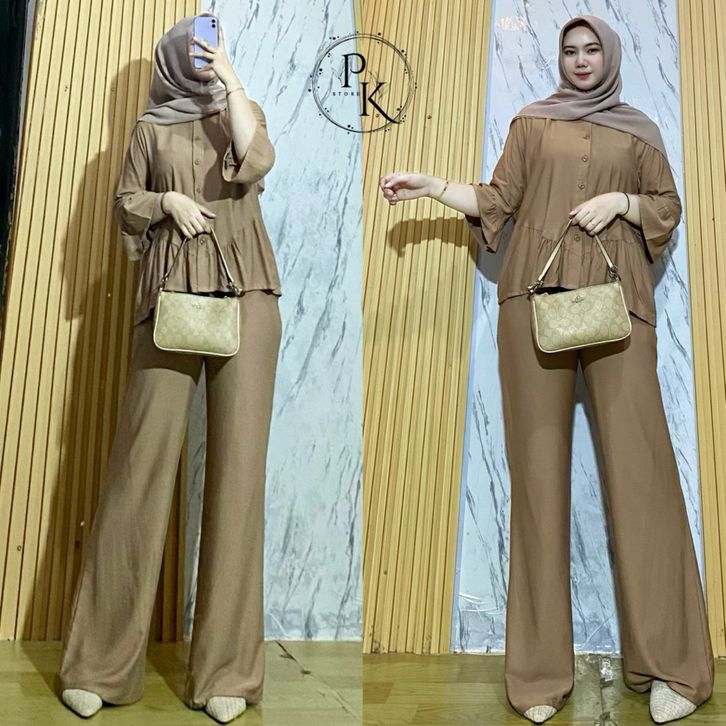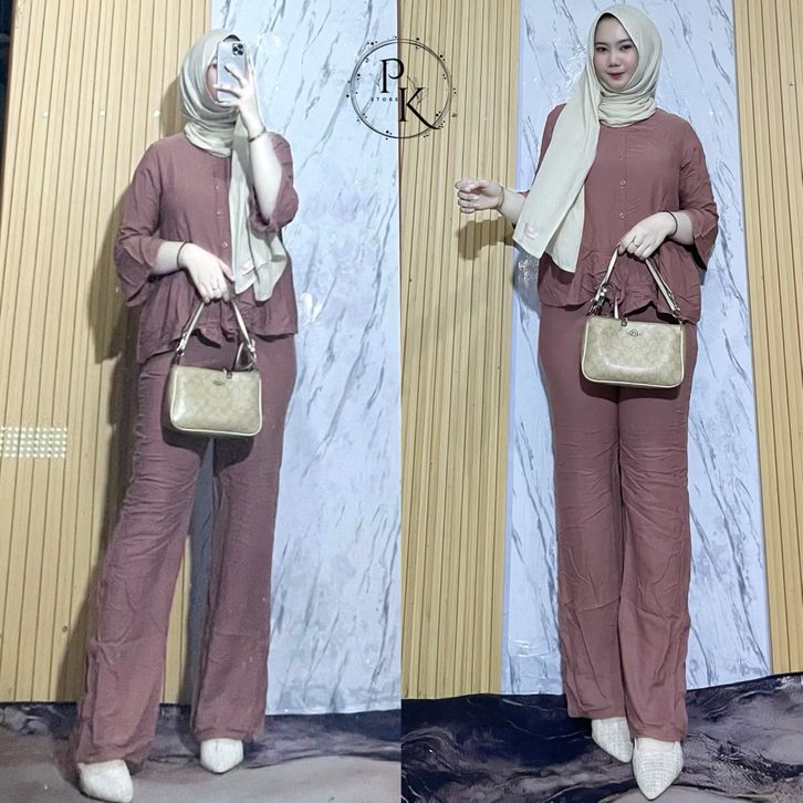 Oneset Rayon Twill Luna Set Celana Rayon Polos Oneset Wanita Busui Oneset Rempel