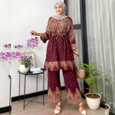 One Set Wanita Tiedye Setelan Tunik LD 120 Tali Motif Batik Semprot Rayon Premium Busui Lengan Panjang