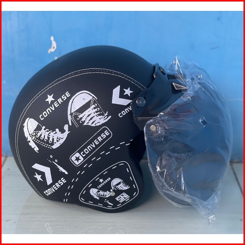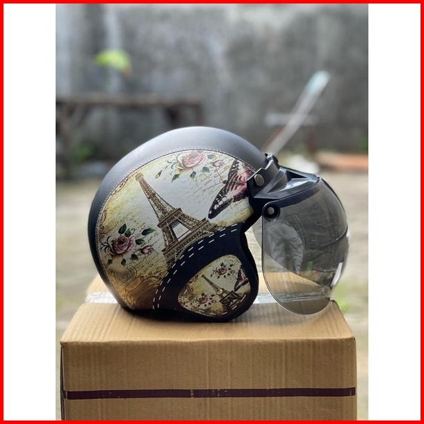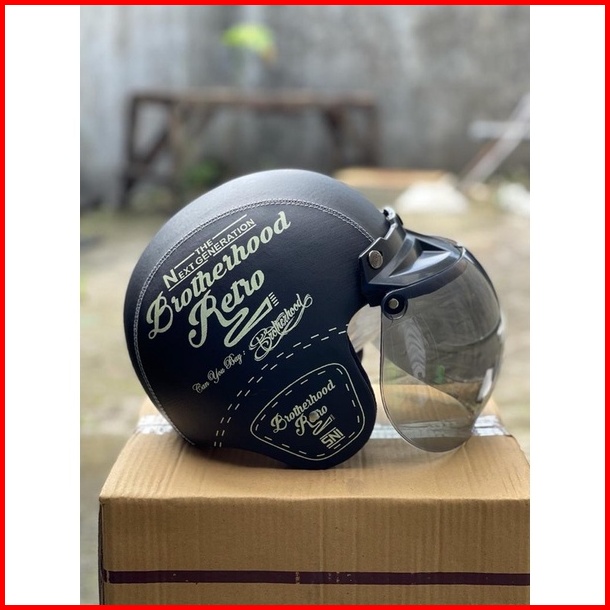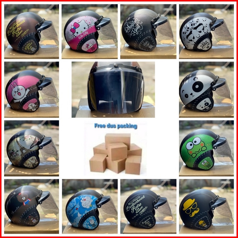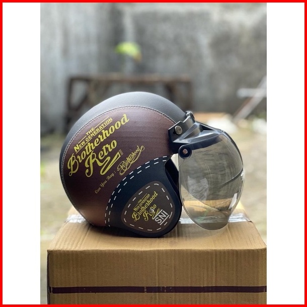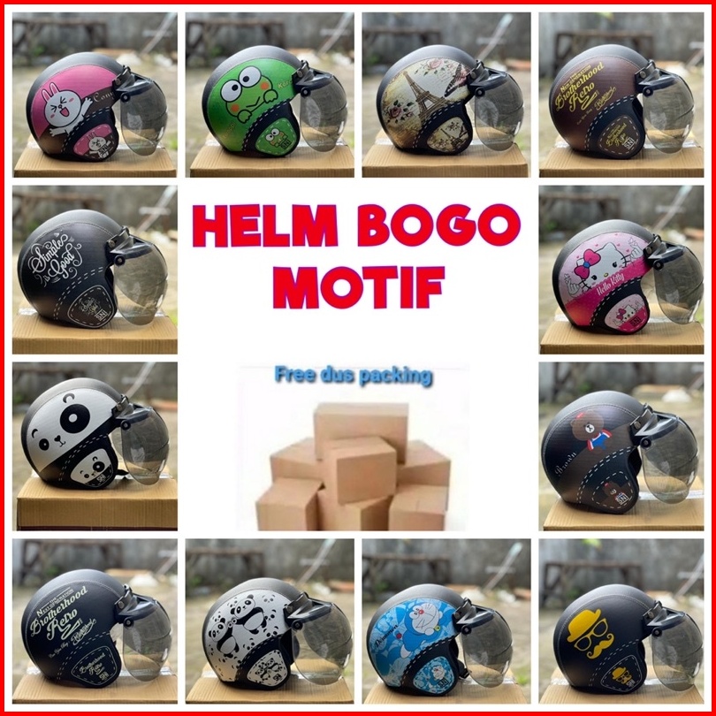 Helm Bogo Motif Dewasa Retro Kulit Motif Kaca