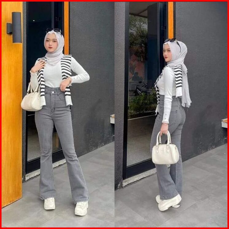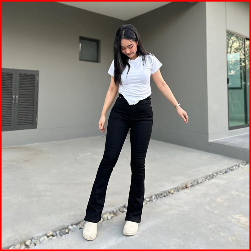 Almagadon - Jeans Cutbray Highwaist Wanita Celana Jeans Wanita Celana Cutbray Stretch Highwaist