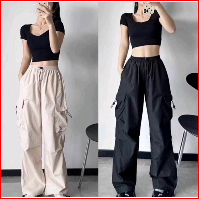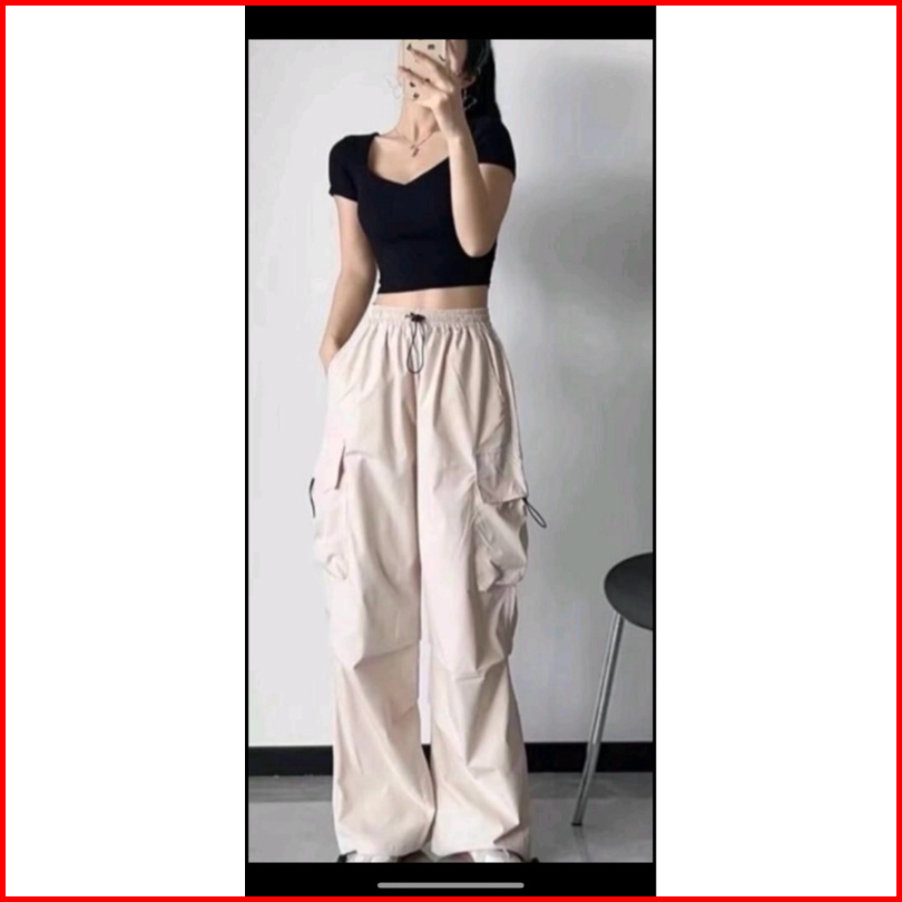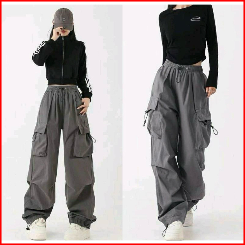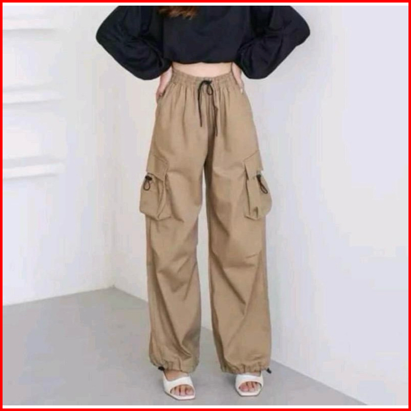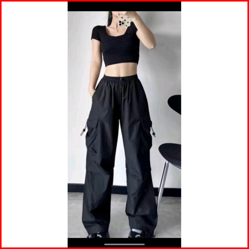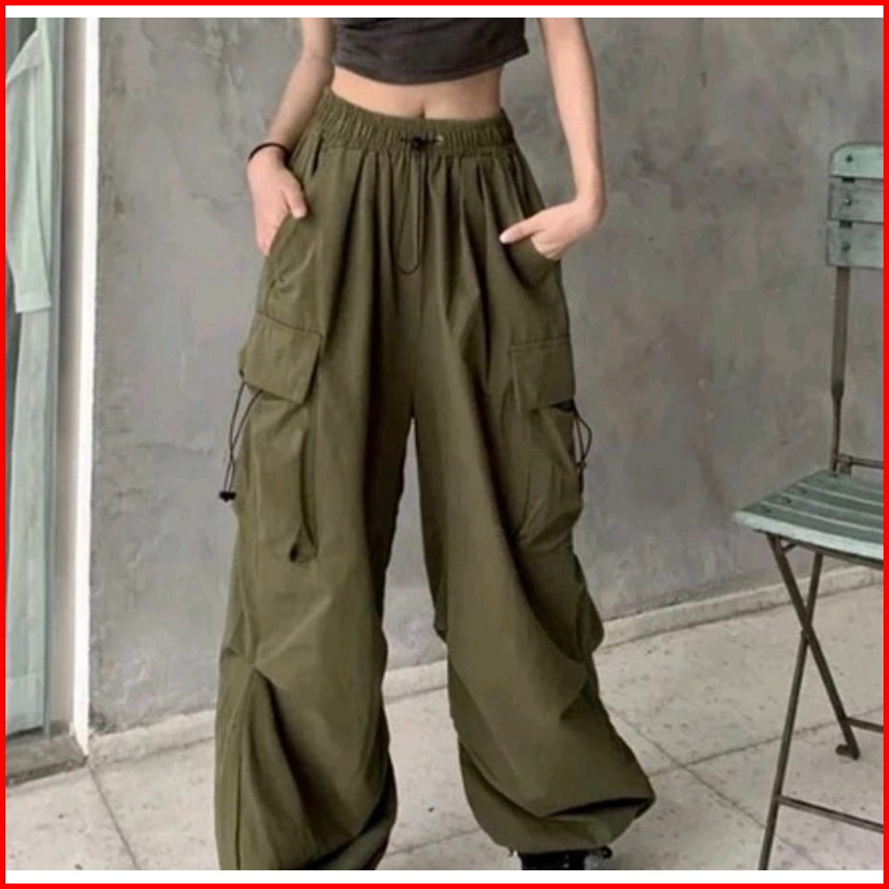 Celana Kargo Wanita Highwaist Loose Celana Cargo Korean Style Jumbo Terbaru