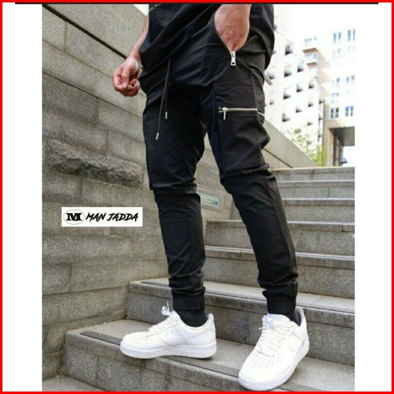 Man Jadda Celana Jogger Cargo Zipper Cargo Jogger Pants Unisex