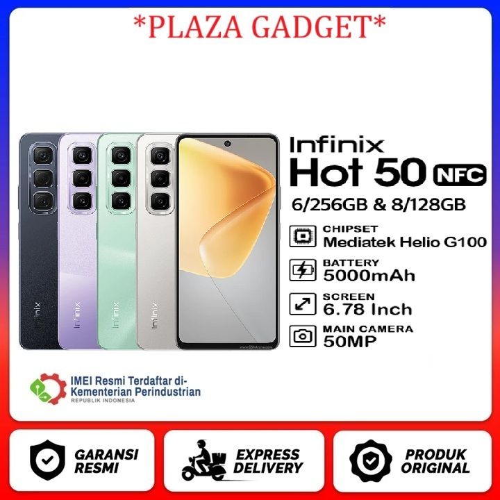 INFINIX HOT 50 NFC 6/256GB+8/128GB Chipset Mediatek Helio G100 (6 nm) Battery Type 5000 mAh, non-removable