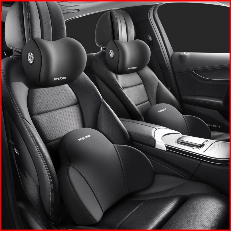 Readybantal Leher Mobil Sandaran Leher Penopang Busa Memori Set Bantal Pinggang Bantal Leher Mobil Kualitas Kulit Premiu