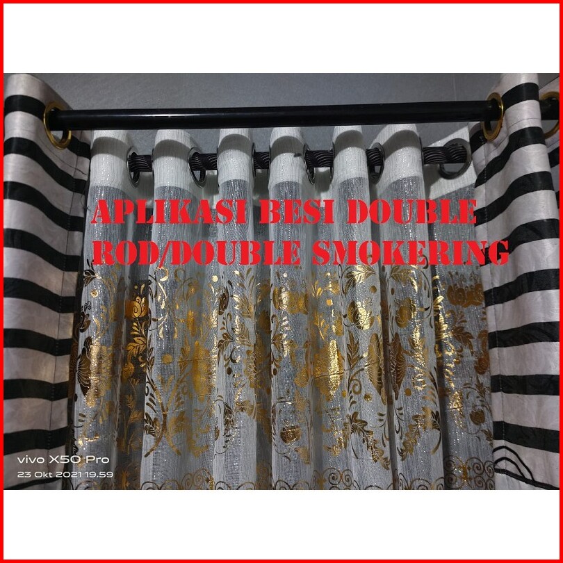 Batang Tiang Besi Gorden Double Bulat Full Set Besi Vitrase Double Smokering