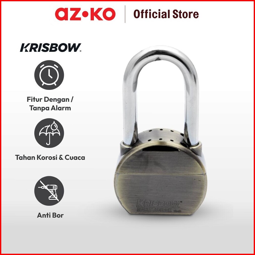 Azko Krisbow Gembok Kuningan Dengan Alarm Padlock Gembok Pintu Pager Rantai Pengunci Pengaman Pagar Pengunci Serbaguna P