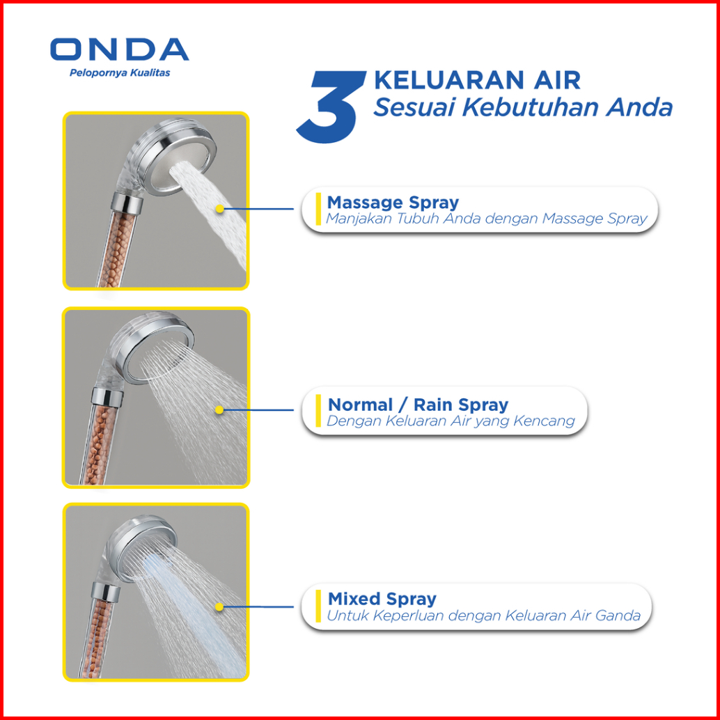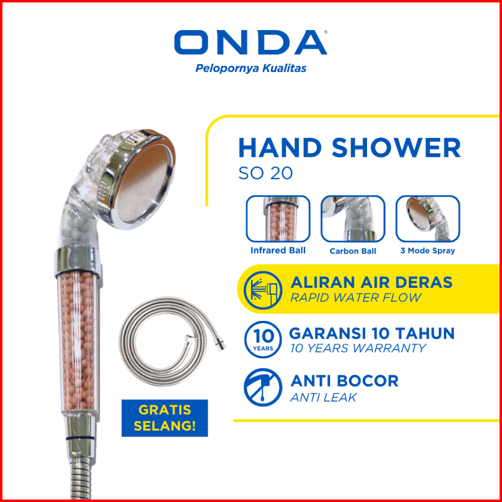 Onda Hand Shower Mandi So 20 Shower Heads 2 Mode Air Kepala Shower Genggam Filter Ion Anti Bocor