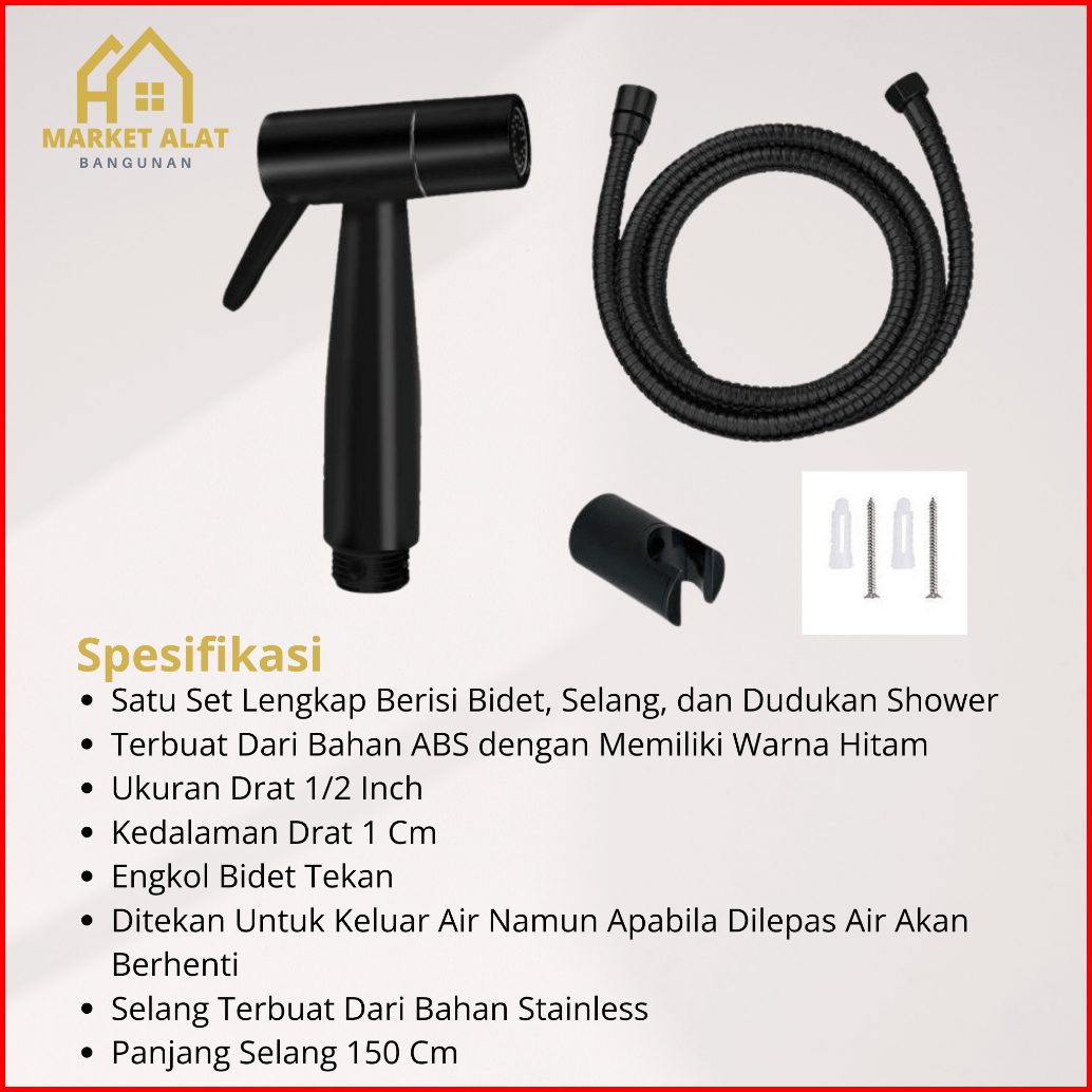 Jet Shower Selang Hitam Kran Cebok Satu Set Kepala Jet Shower Doff Bidet Semprotan Wc Duduk Kamar Mandi Dop