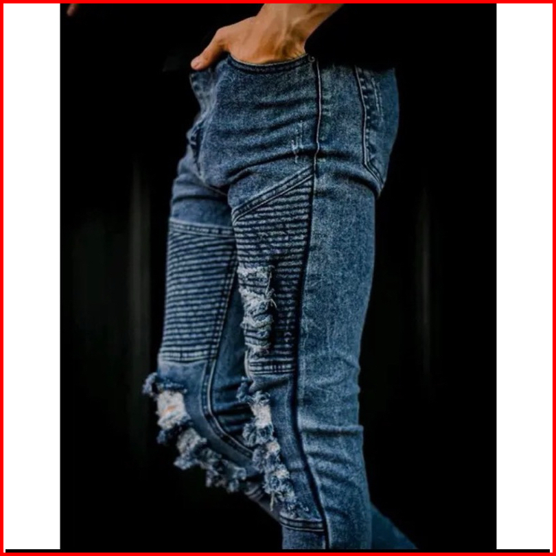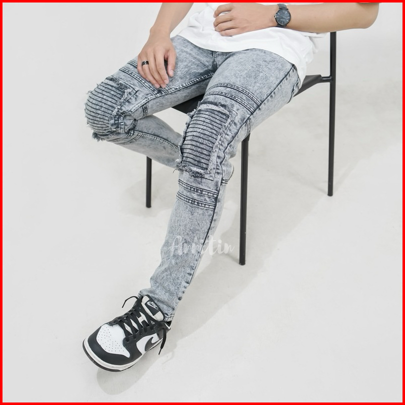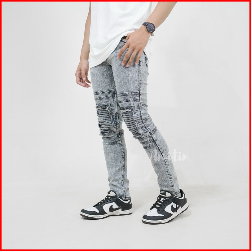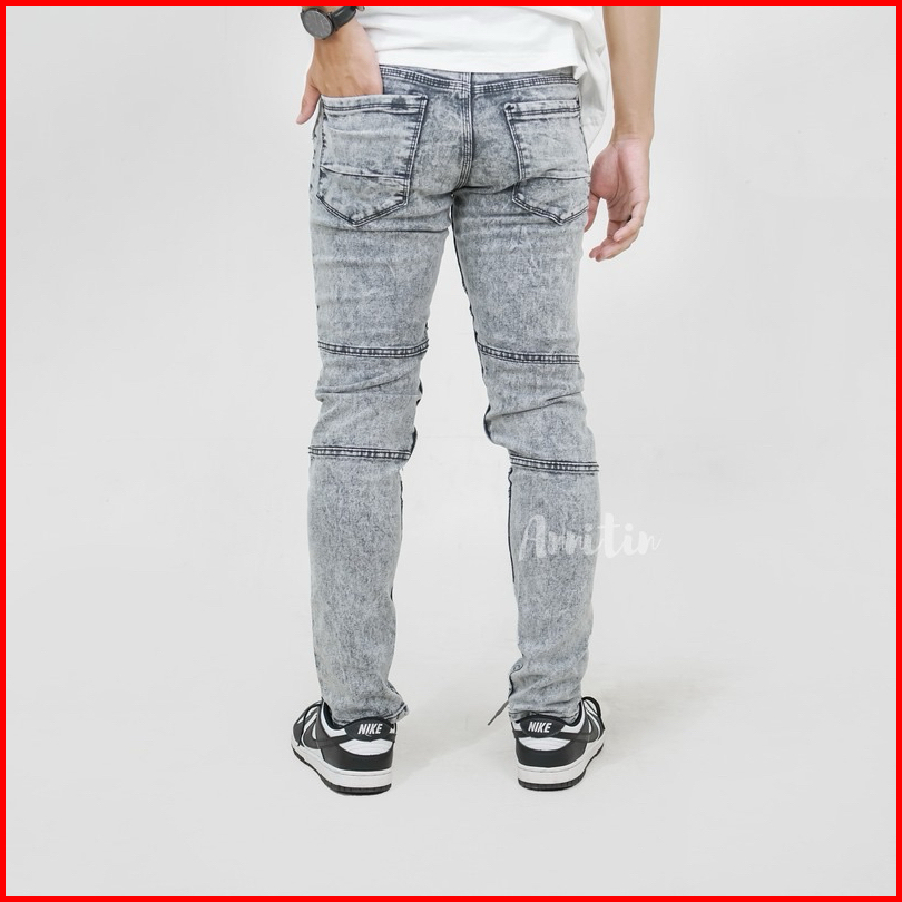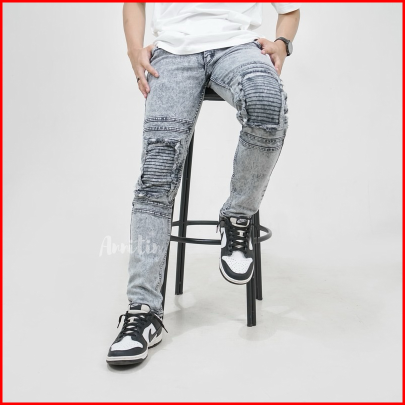 Celana Bikers Riders Polos Panjang Snow Black Jeans Biker Sobek Skinny Slim Fit - Celana Jeans Pria-celana Panjang Pria-