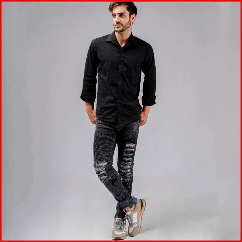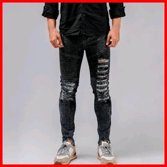 Celana Jeans Panjang Pria Bikers Rider Sobek Lutut Slimfit Skinny Pensil Strecth Melar Soft Denim