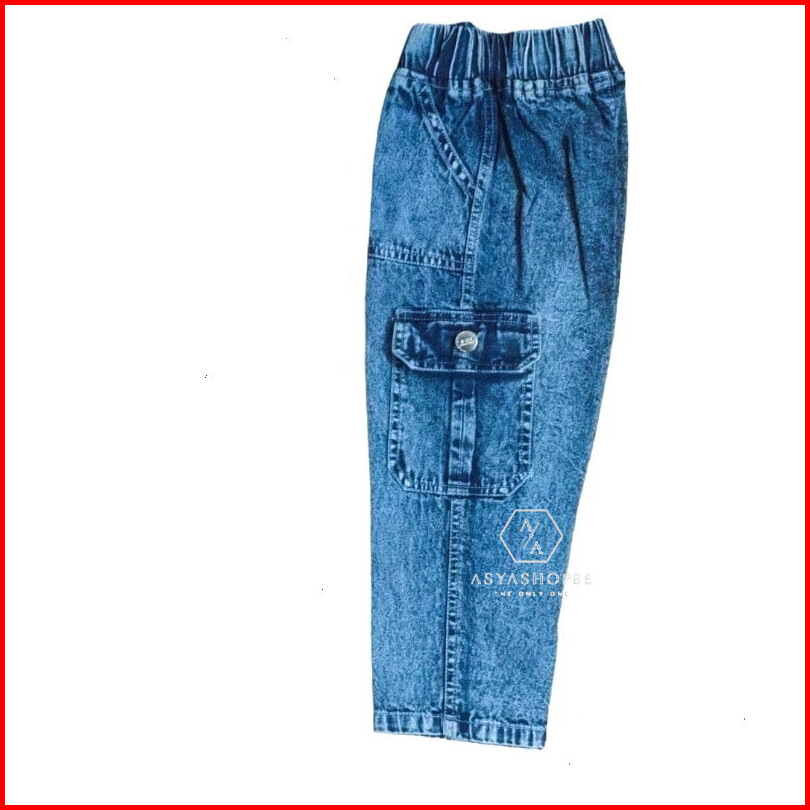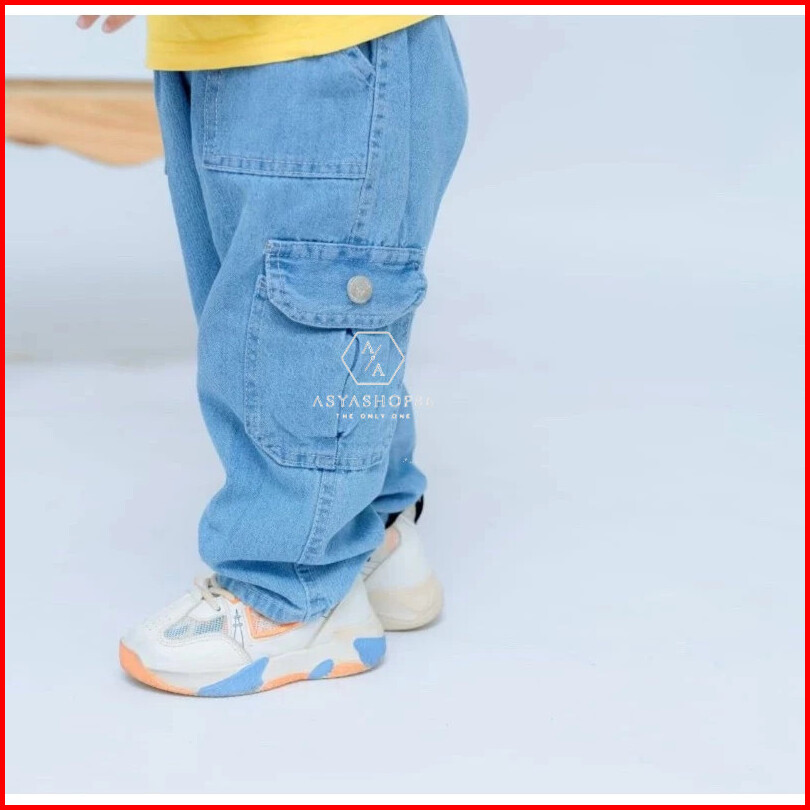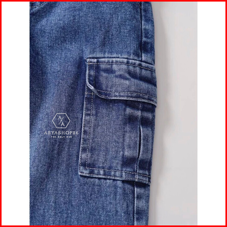 Celana Cargo Jeans Anak Laki-laki Usia 7-12 Tahun - Bawahan Panjang Cargo Denim Anak Cowok Terbaru Viral - Celana Kimpul