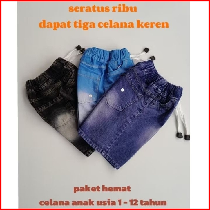 Paket 3pcs Celana Jeans Anak Laki Laki Perempuan Usia 1 - 12 Tahun
