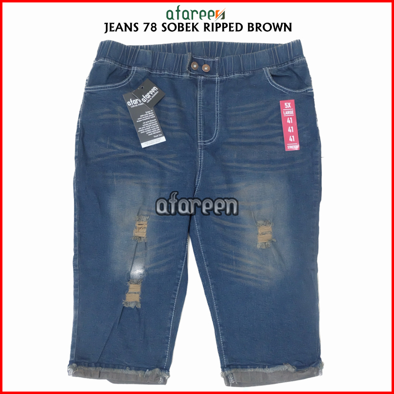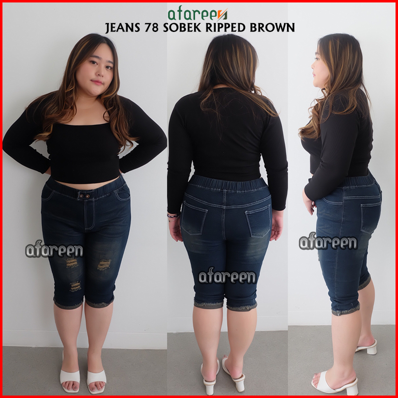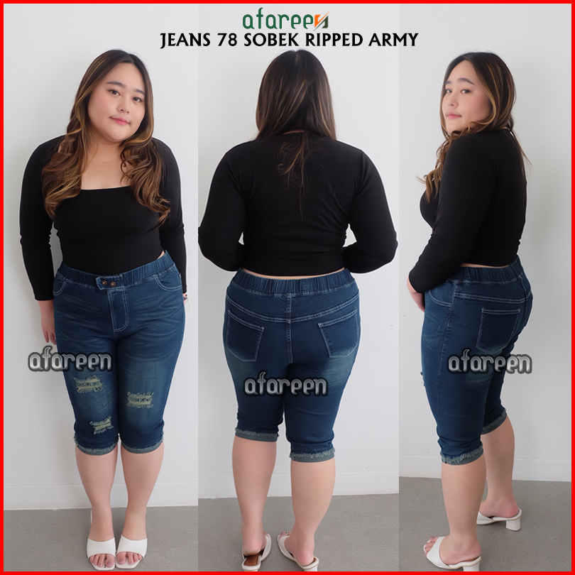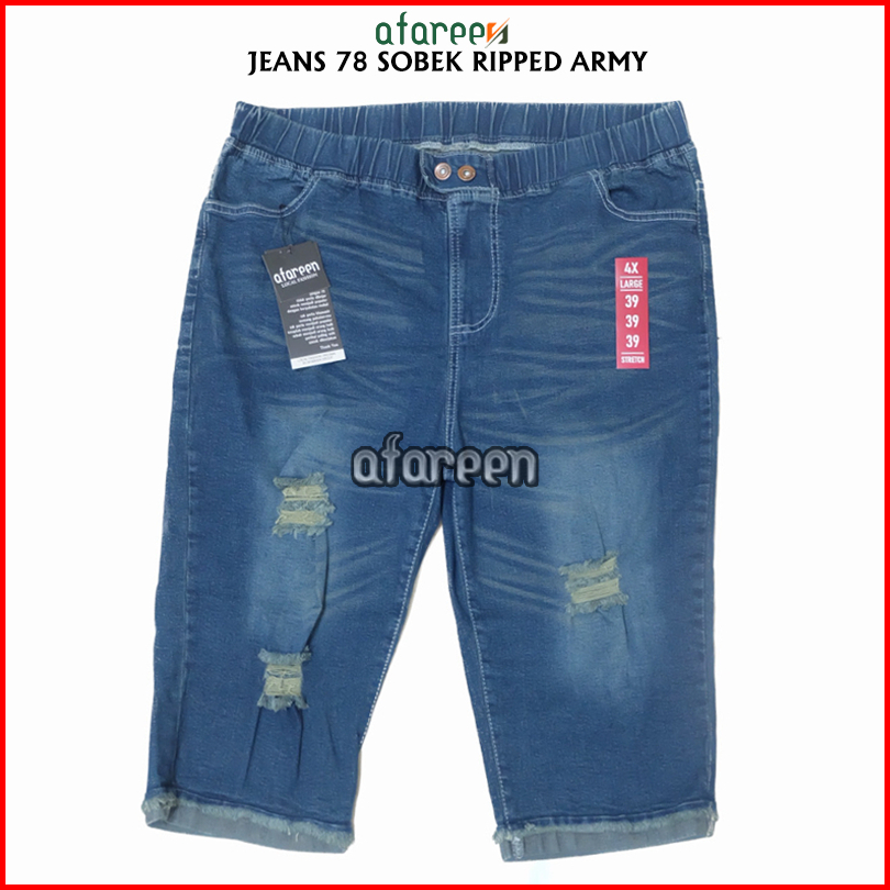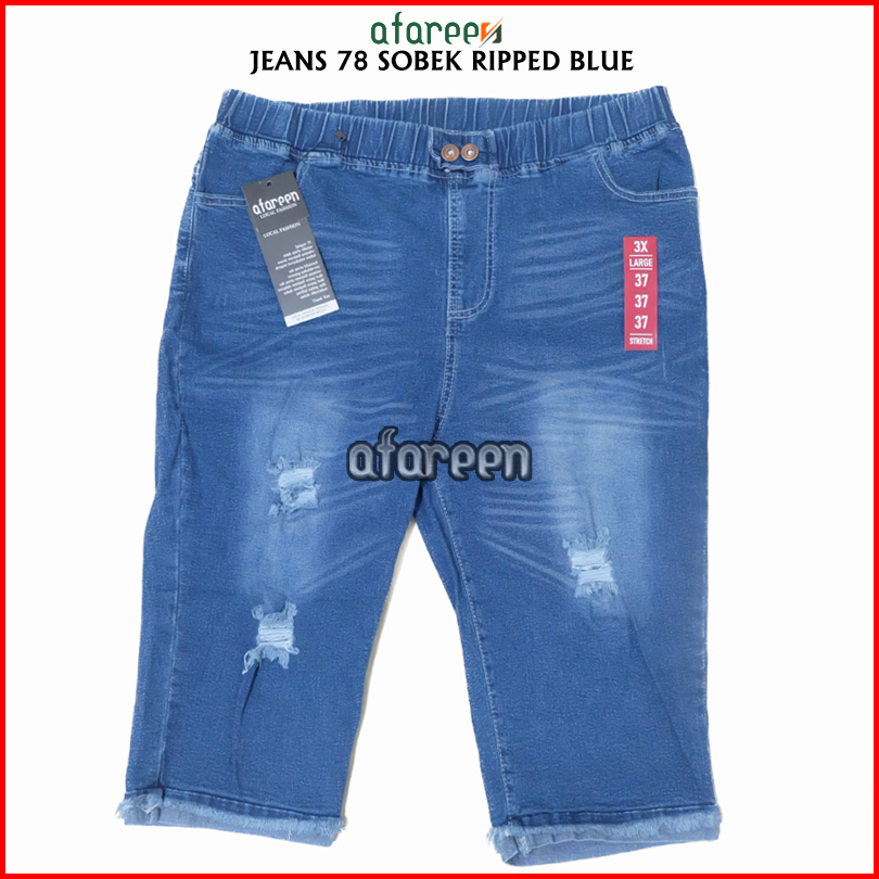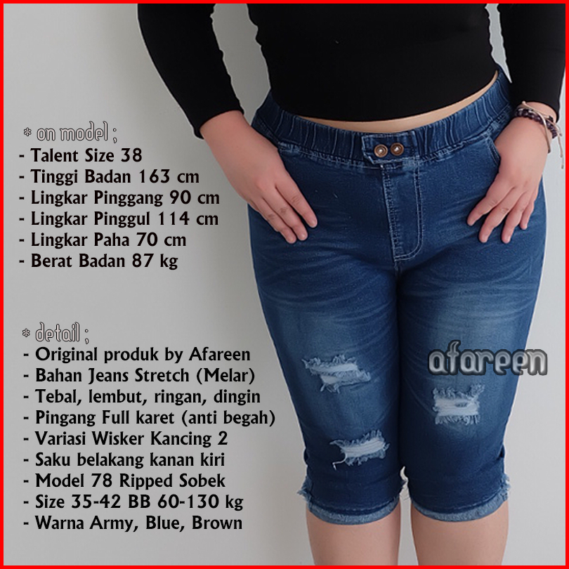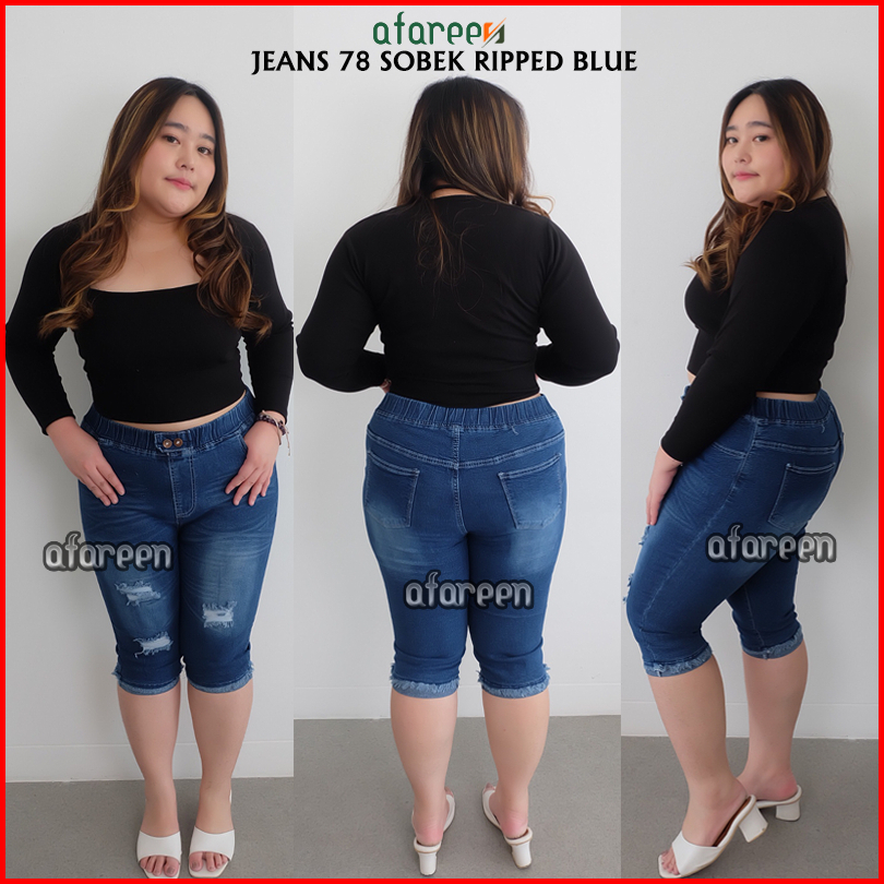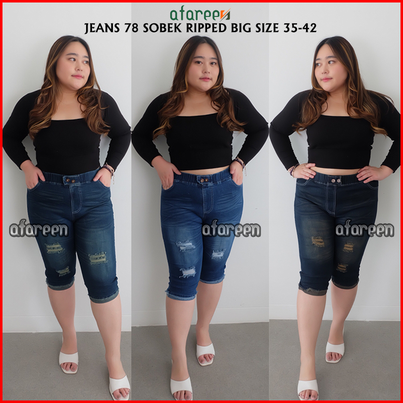 Afareen - Celana Jeans Wanita 7 8 Jumbo Jeans Wanita 78 Sobek Variasi Kancing Jeans Big Size 35-42