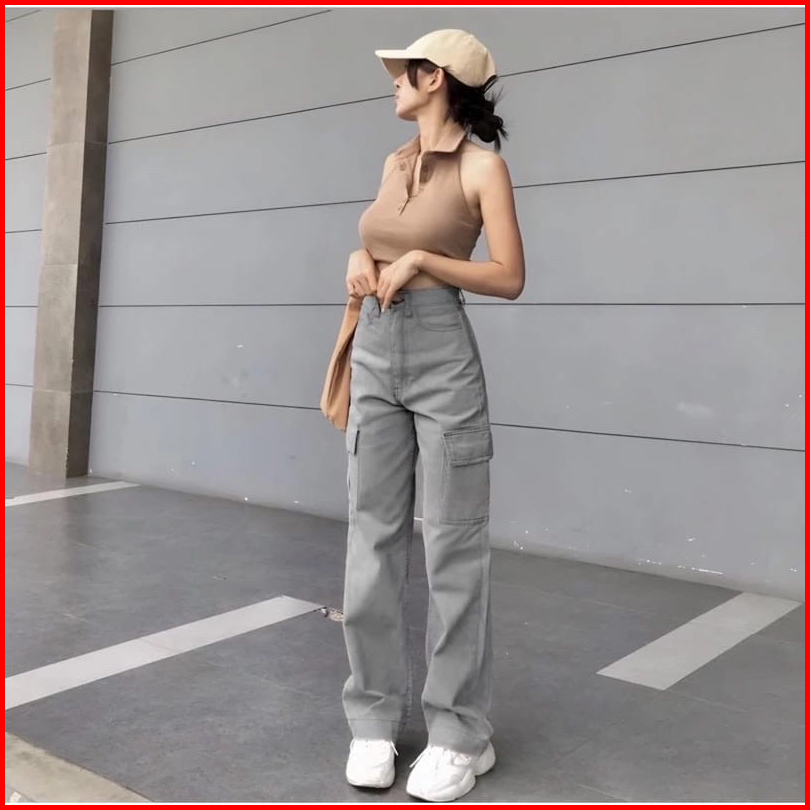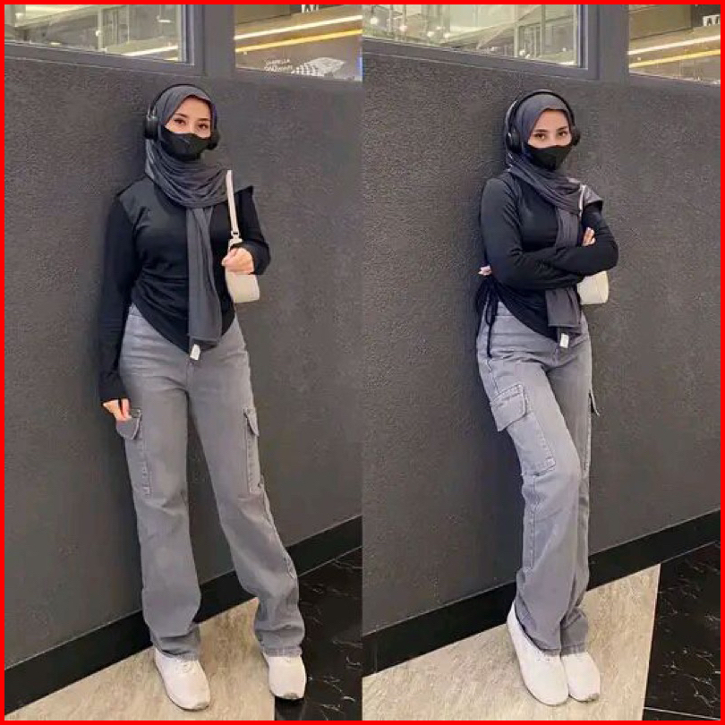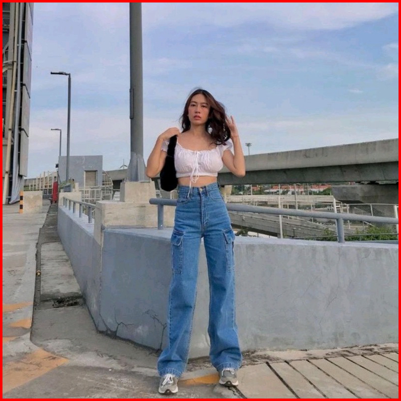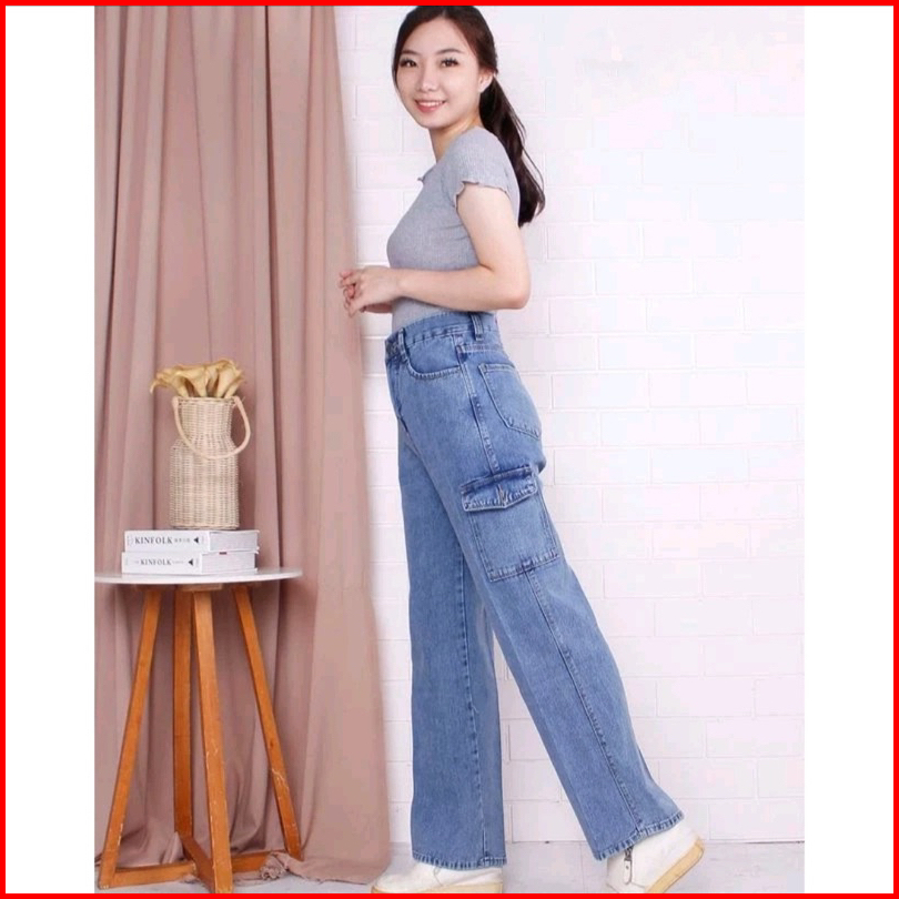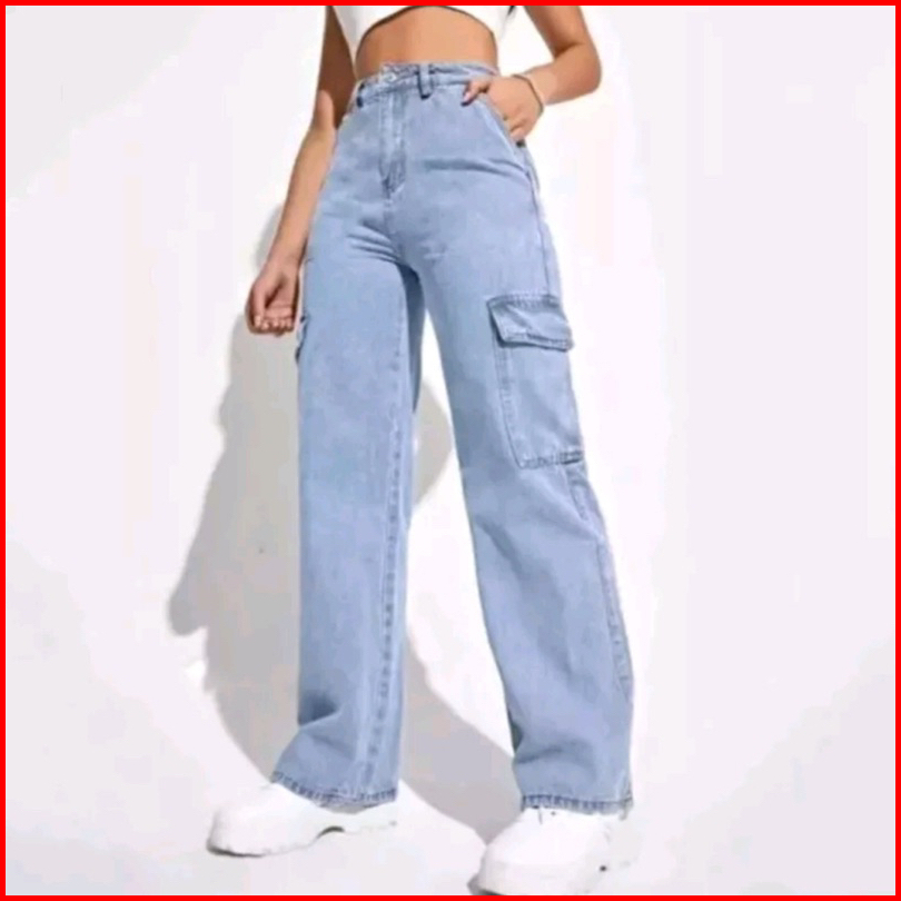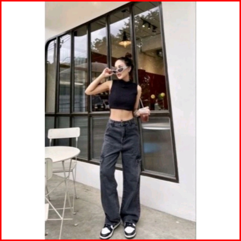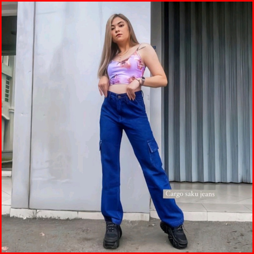 Celana Highwaist Cargo Jeans Wanita Voll 2 Vintage Denim