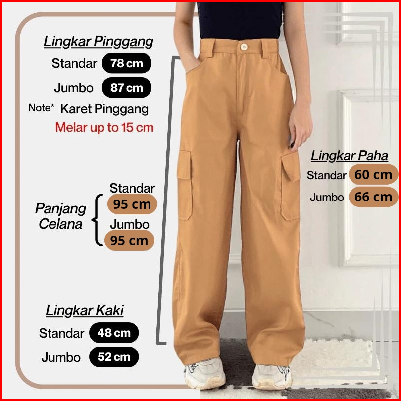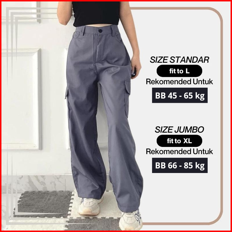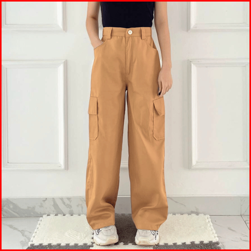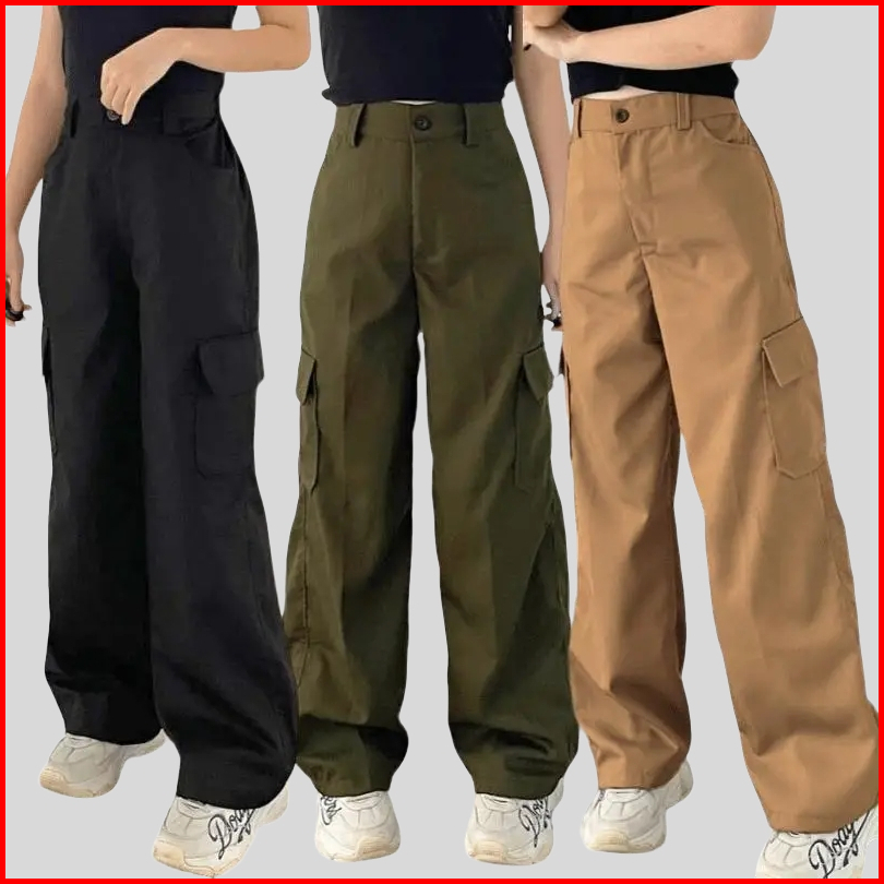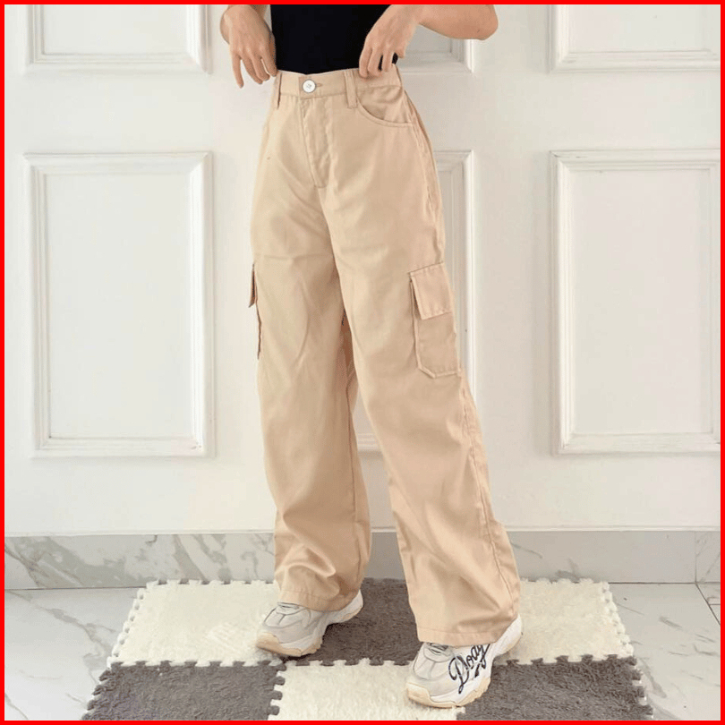 Celana Cargo Wanita Kekinian Highwaist Loose Cargo Pants Preimium Korean Style Pinggang Karet