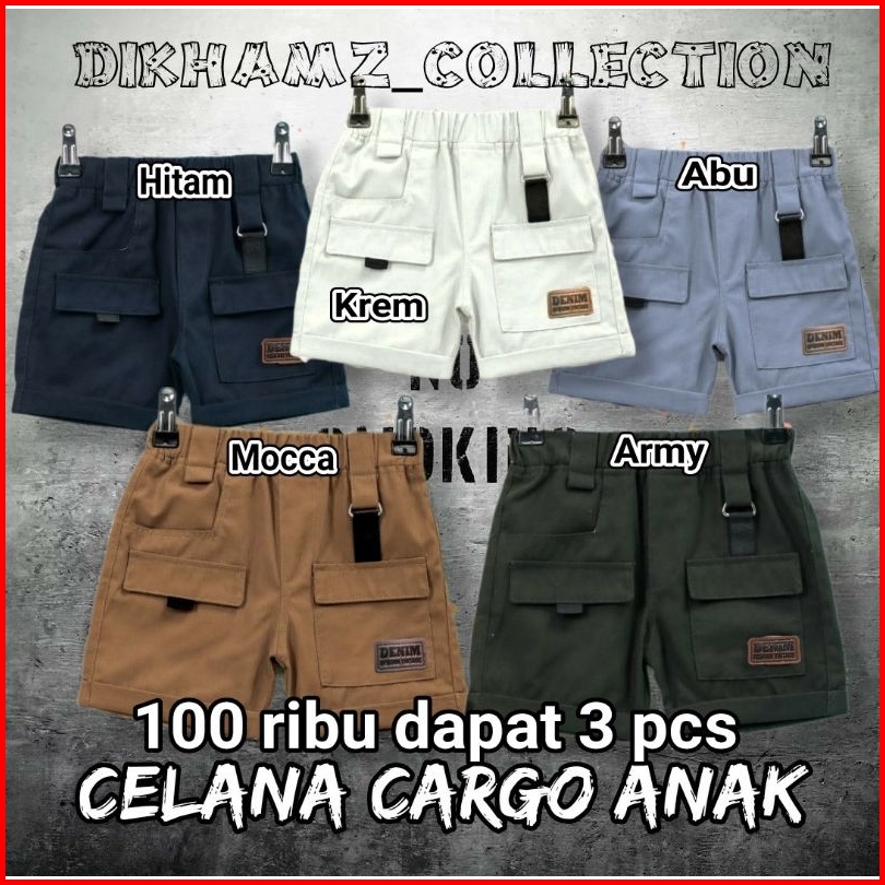 100 Ribu Dapat 3 Pcs Celana Pendek Cargo Anak Celana Cargo Short Pants Usia 1 - 10 Tahun