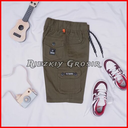 Rauden Celana Pendek Cargo Anak Usia 1-13th Bahan Combet Stetch Mulur Elastis