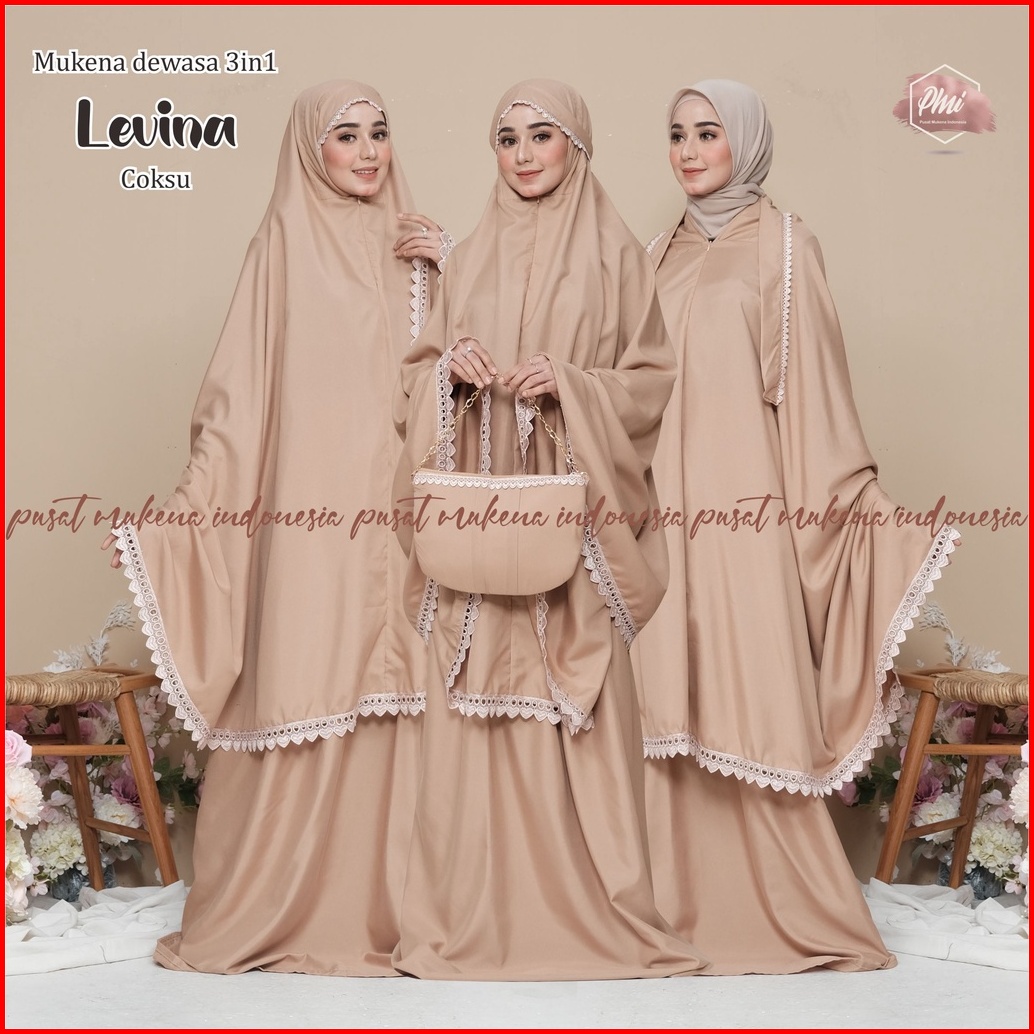 Pusat Mukena Indonesia Mukena Dewasa Katun 3in1 Levina
