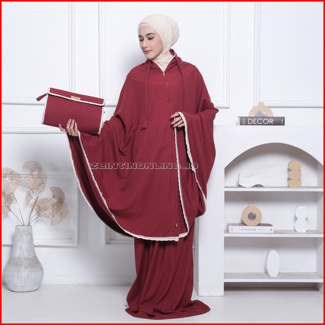 Zeintin - Full Set Sejadah Mukena Dewasa Katun Traveling Renda Premium At