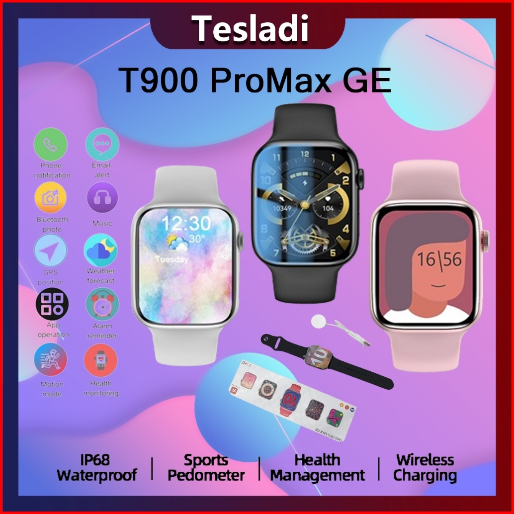 Tesladi Smartwatch T900 Pro Max Ge 2.3inci Series 10 Layar Sentuh Layar Penuh Jam Tangan Bisa Phone Call Ip68 Waterproof