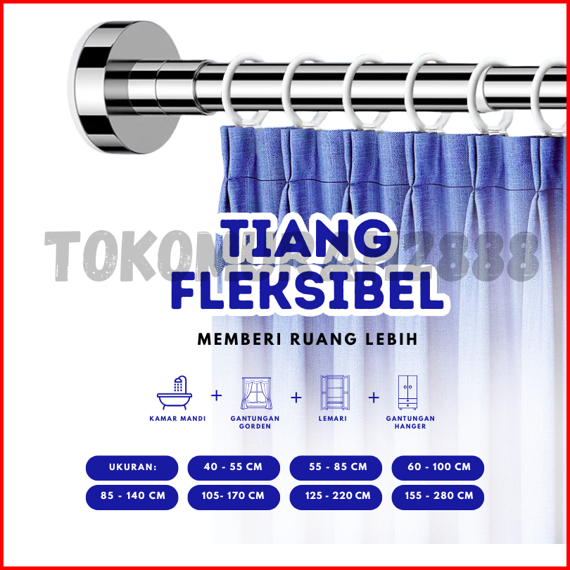 Stainless Steel Tiang Gorden Batang Tirai Fleksible Tanpa Paku Gantungan Serbaguna Teleskopik Gantungan Baju Tiang Jemur